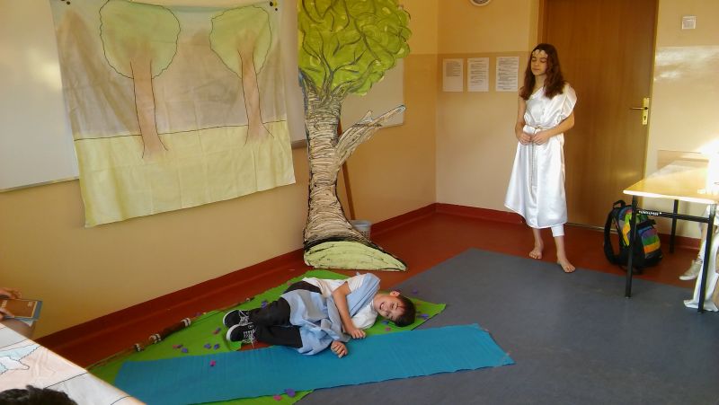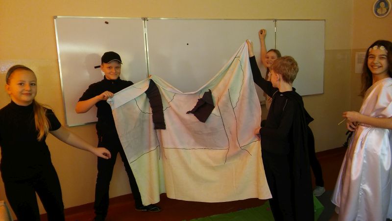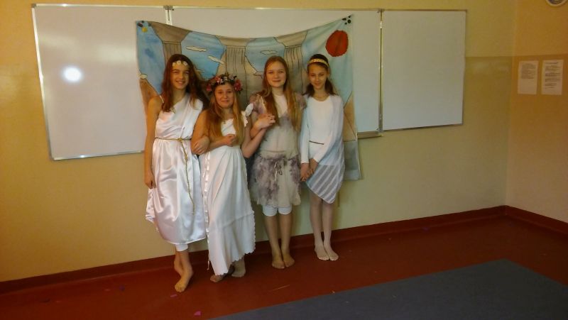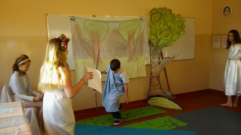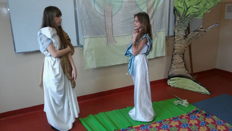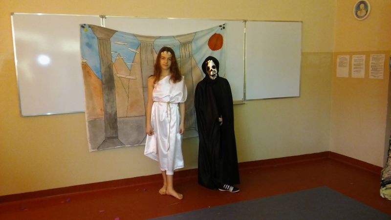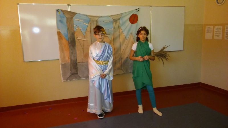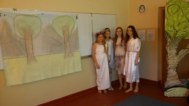 Tak bardzo pokochaliśmy mity greckie, że postanowiliśmy nakręcić film o „Demeter i Korze”. Sami opracowaliśmy scenariusz, przygotowaliśmy dekoracje, stroje, nagraliśmy muzykę, wyreżyserowaliśmy i zmontowaliśmy film. Przekonaliśmy się na własnej skórze, jak niełatwa jest rola reżysera, który musi dopilnować, aby wszystko grało. Jak każde działanie, również nasza inicjatywa poddana została surowej krytyce nas samych. Podczas oglądania nagrania najłatwiej dostrzec popełniane błędy, ale również miło zobaczyć siebie i kolegów, wcielających się w mitologiczne postaci. Nagrywanie filmu okazało się dla nas ciekawą i pouczającą lekcją.