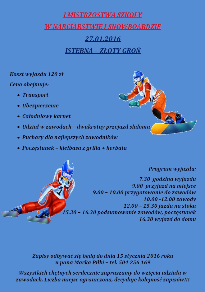 I MISTRZOSTWA SZKOŁY W NARCIARSTWIE ORAZ SNOWBOARDZIE
