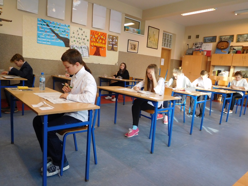 Dnia 6 listopada 2015 r. odbył się w naszej szkole Kuratoryjny Konkurs Przedmiotowy z Matematyki. W etapie szkolnym wzięli udział uczniowie i uczennice klas szóstych. Przez 90 minut zmagali się z zestawem konkursowym, który składał się z: zadań zamkniętych, zadań otwartych, zadań wielokrotnego wyboru, zadań na dobieranie, zadań typu prawda – fałsz, zadań z „luką” oraz… krzyżówki.
