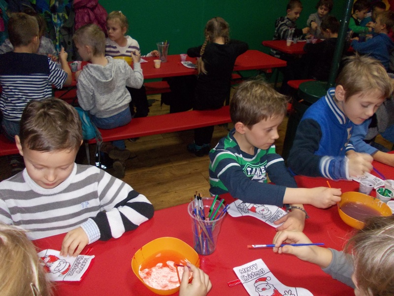 Obchodziliśmy Dzień Górnika - świetlicę odwiedził górnik w pełnym umundurowaniu i opowiadał, jak wygląda praca w kopalni. Dzieci wystąpiły przed gościem, śpiewając tradycyjne śląskie piosenki. Zawitał do nas również Św.Mikołaj, którego podopieczni świetlicy powitali z wielką radością. Odbył się konkurs na najpiękniejszą kartę na Boże Narodzenie oraz drugi, dotyczący wartościowego odżywiania, "Zdrowa żywność na talerzu". Ogłosiliśmy akcję charytatywną dla dzieci z Hospicjum - zbieramy czekolady (dołączcie się!:) Odbyła się świetlicowa wigilia - w tym dniu uroczyście zgromadziliśmy się przy stole, łamiąc się opłatkiem oraz kolędując. Każdego dnia prowadzimy zajęcia: plastyczne, ruchowe, taneczne, a kiedy odwiedzają nas studentki Uniwersytetu Śląskiego z grupy "Projektor" eksperymentujemy i konstruujemy!