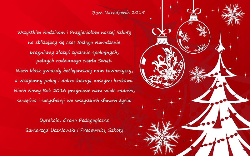 Przypominamy, że 22 grudnia (tj. wtorek) odbędą się szkolne jasełka oraz wigilie klasowe. Szczegółowych informacji nt. organizacji i przebiegu zajęć w tym dniu udzielili/udzielą wychowawcy klas.
