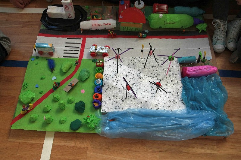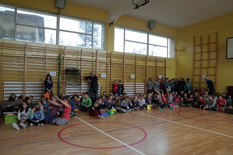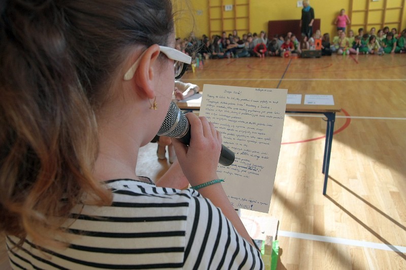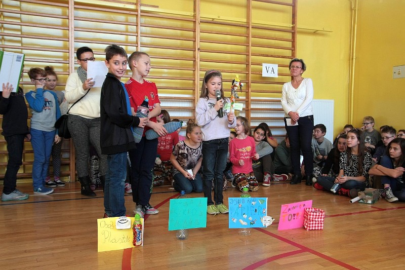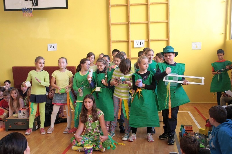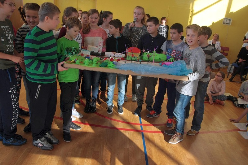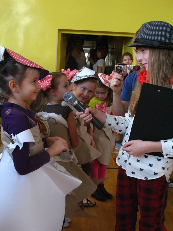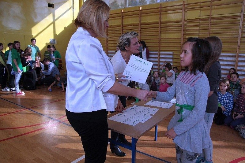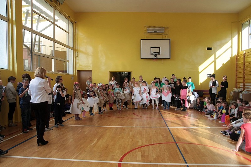 Akcję "Sprzątanie Świata" w naszej szkole zakończył pokaz mody ekologicznej. Jak coś ładnego zrobić z czegoś niepotrzebnego, wymyśliły nasze małe stylistki oraz panie ze świetlicy szkolnej. Stroje zostały wykonane z resztek szarego papieru, bibuły, papierowych tacek i innych surowców wtórnych. Modelki z klas I-III dzielnie znosiły przygotowania w szkolnej garderobie, by móc pięknie zaprezentować się na wybiegu. Pokaz oglądali z wielkim zapałem uczniowie klas starszych oraz rówieśnicy modelek. Wszystkim występ bardzo się podobał, co zostało potwierdzone gromkimi brawami.