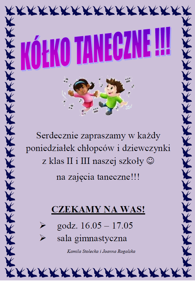 Zapraszamy klasy II oraz III na kółko taneczne!