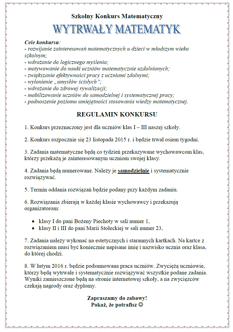 Wytrwały Matematyk - konkurs dla klas I - III