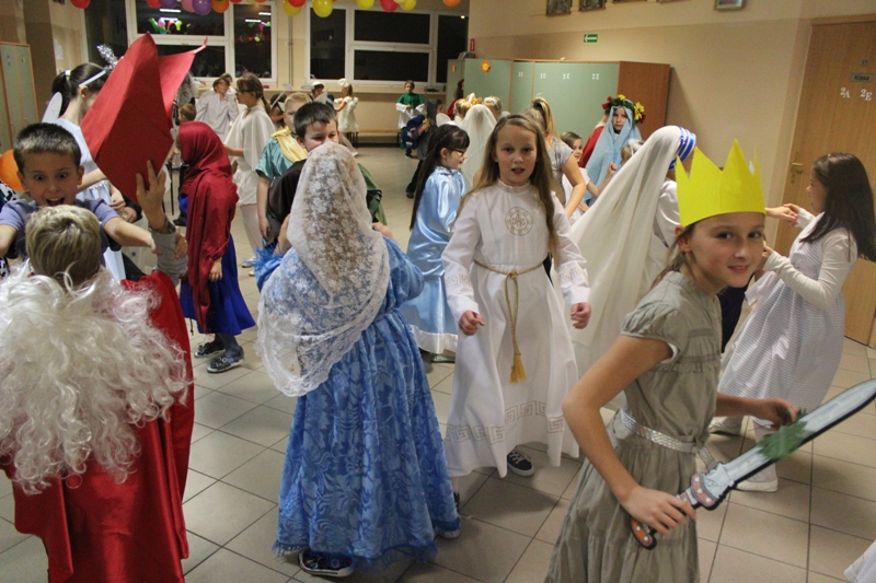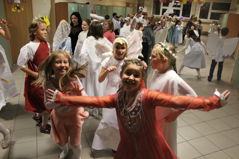 W czwartek 29 października w naszej szkole zorganizowano BAL WSZYSTKICH ŚWIĘTYCH, w którym wzięło udział 99 uczniów. Na balu uczniowie poprzebierani byli za dowolne postacie biblijne, świętych lub anioły. W czasie balu oprócz wspólnych tańców odbyły się liczne konkursy, a na zakończenie dokonano wyboru na najatrakcyjniejsze przebrania oraz wybrano Królową i Króla balu.
