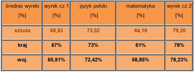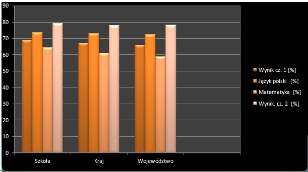 W roku szkolnym 2014/2015 sprawdzian szóstoklasisty po raz pierwszy obejmowa?? tre??ci programowe z 3 przedmiotów: jÄ?zyka polskiego, matematyki i jÄ?zyka angielskiego. Uczniowie i uczennice naszej szko??y uzyskali w ka??dym badanym obszarze wyniki powy??ej ??redniej krajowej, wojewódzkiej i powiatowej. W??ród szkó?? naszego powiatu zdobyli??my wynik najwy??szy, biorÄ?c pod uwagÄ? placówki liczÄ?ce powy??ej 40 uczniów (takich szkó?? w bieru??sko-lÄ?dzinskim jest 8).