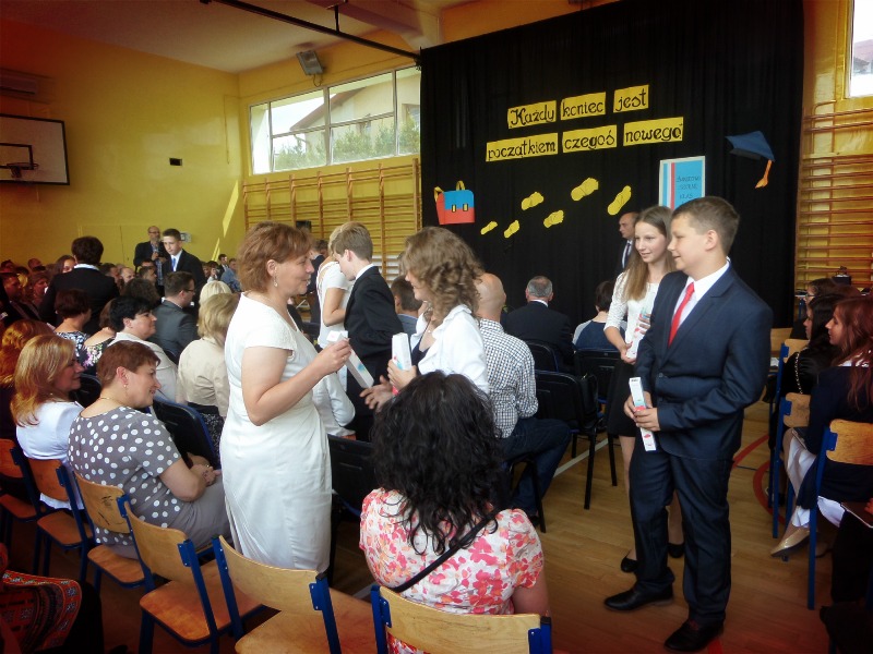 Po cz??ci oficjalnej nast?pi?y klasowe spotkania z wychowawcami. Nie zabrak?o podzi?kowa?, mi?ych s?ów i ?ycze? udanych wakacji. W progi naszej podstawówki zawitali równie? gimnazjali?ci, którym serdecznie dzi?kujemy za pami?? i mi?e odwiedziny! Cieszymy si?, ?e pomimo up?ywu lat ci?gle pami?tacie o swoich nauczycielach i wychowawcach!