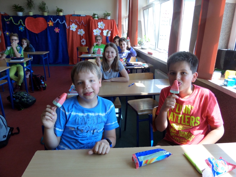 W naszej szkole ¶więtowanie Dnia Dziecka rozpoczęli¶my już w pi±tek – VI „c” odegrała dla klas I-VI przedstawienie motywach ba¶ni „Czerwony Kapturek”, za¶ Rada Rodziców poczęstowała wszystkie grzeczne dzieci pysznymi lodami. Skończymy we ¶rodę – dyskotek±, na któr± Samorz±d Uczniowski serdecznie zaprasza starsze klasy.