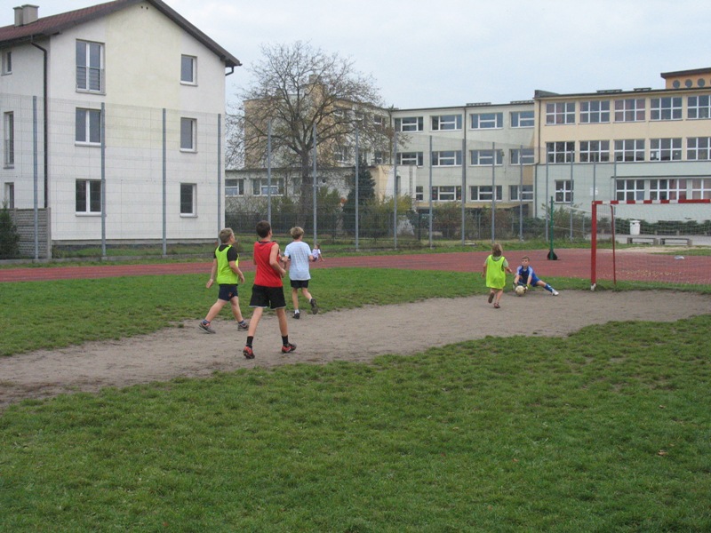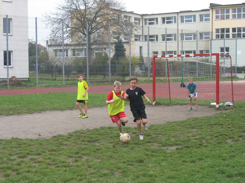 W my¶l tych słów Ojca ¶w., po modlitwie na rozpoczęcie, przyst±pili¶my do sportowej rywalizacji. W turnieju wzięli udział uczniowie klas IV-VI. Do rozgrywek przyst±piło pięć pięcioosobowych drużyn: „FC Ogórki”, „FC Koguty”, „Real Madryt”, „FC Berlinki” oraz zespół składaj±cy się z samych dziewcz±t – „Bez nazwy”. Poszczególne mecze były rozgrywane systemem „każdy z każdym”. Po dwugodzinnych zmaganiach wyłoniły się dwie najlepsze drużyny: „FC Berlinki” i „Real Madryt”. Z racji tego, że obie miały tak± sam± liczbę punktów, rozegrano pomiędzy nimi mecz finałowy. W regulaminowym czasie spotkanie nie zostało rozstrzygnięte, a więc drużyny przyst±piły do serii rzutów karnych. W nich lepsi okazali się zawodnicy „Realu Madryt” w składzie: Katarzyna Kowalska, Dawid Russek, Kacper Szwedo, Robert Synowiec, Bartosz Humski. Zwycięzcom serdecznie gratulujemy.