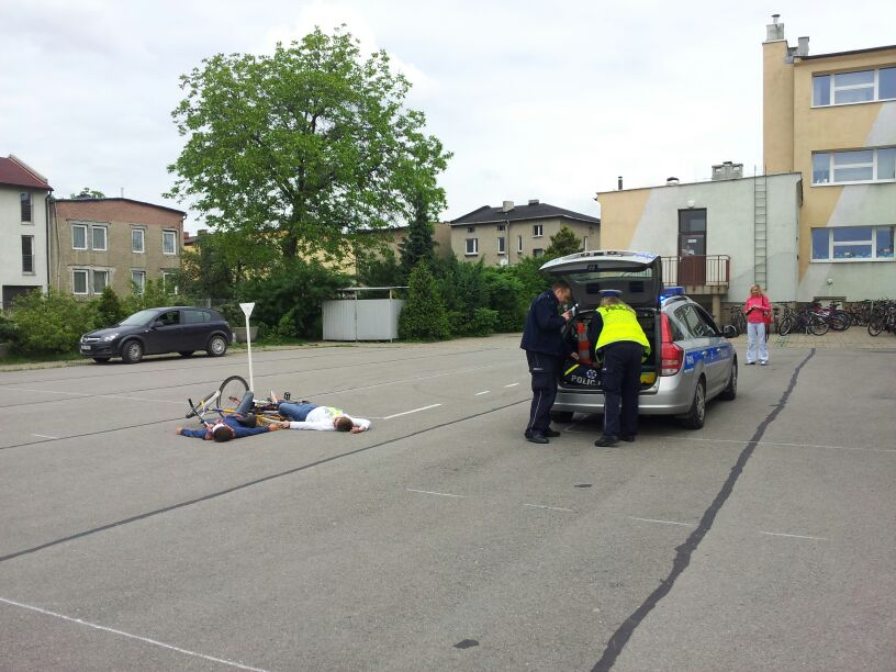 Policjanci z Komendy Powiatowej w Bieruniu dali dzisiaj prawdziwy popis swoich możliwo¶ci. Podczas spotkania z klasami 4-6 dobitnie przypomnieli o konieczno¶ci przestrzegania przepisów ruchu drogowego. Szczególny nacisk położyli na kwestię brawury - podkre¶lili, że ¶wiadczy ona wył±cznie o głupocie i nie jest żadnym powodem do dumy. W zaimprowizowanych scenkach z udziałem chłopaków z 6 "d" przypomnieli, jak postępować podczas wypadków i kolizji drogowych. Policjanci pochwalili się również swoim sprzętem oraz pojazdami. Szczególn± popularno¶ci± cieszył się nowoczesny radiowóz.