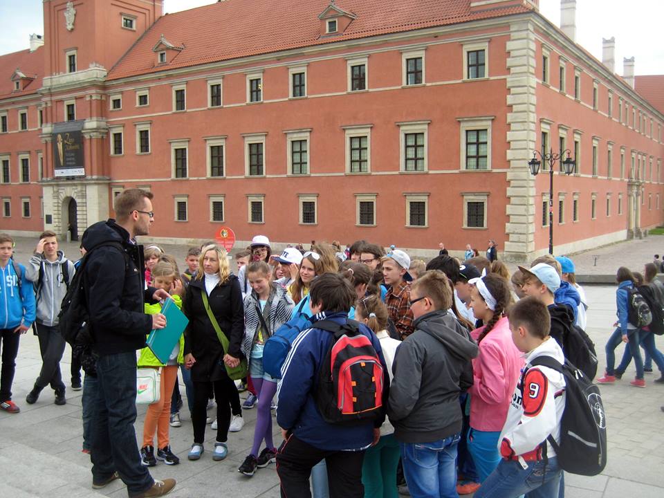 Drugiego dnia odkrywali¶my urodę Starego Miasta, w którym przeszło¶ć splatała się z nowoczesno¶ci±. Słuchali¶my z nieukrywanym podziwem pięknej polszczyzny naszego przewodnika, wspaniale opisuj±cego najsłynniejsze zabytki Warszawy, przytaczaj±c fakty dobrze znane nam z lekcji historii. Podziwiali¶my pałac w Łazienkach, wartę pełnion± przy Grobie Nieznanego Żołnierza, a na zakończenie Pałac Kultury, w którym zwiedzili¶my Muzeum Techniki.