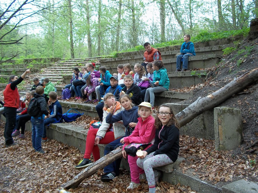 Za nami dwa niezapomniane dni w Jurze Krakowsko - Częstochowskiej. Nasz± przygodę pod znakiem ekologii i historii rozpoczęli¶my nieopodal góruj±cych nad Olsztynem ruin warownego zamku królewskiego z XIV wieku. Zamieszkali¶my w nowym i komfortowo wyposażonym hotelu z widokiem na zamkowe wzgórze. Ogl±danie zamku odłożyli¶my jednak do wieczora, aby zwiększyć szanse spotkania zamkowych duchów, a na pocz±tek wybrali¶my się do kamieniołomu „Kielniki”. W nieczynnym kamieniołomie, który odsłonił wnętrze wapiennego wzgórza, można zobaczyć skamieniało¶ci - g±bki i amonity - oraz zapoznać się z geologiczn± budow± terenu. Jednak największ± atrakcj± okazała się możliwo¶ć samodzielnego odłupywania fragmentów skał za pomoc± młotków, w które zaopatrzył nas przewodnik. A kiedy dowiedzieli¶my się, że w kamieniołomie można natrafić też na rudy srebra poczuli¶my się jak poszukiwacze Eldorado. Żyły srebra niestety nie odnaleĽli¶my, ale i tak łupy były bogate i niektórzy zabrali do domu spore fragmenty morskich osadów. Po obiedzie znowu wyruszyli¶my na szlak, tym razem do Jaskini NiedĽwiedziej, która została tak nazwana, gdyż odnaleziono w niej szcz±tki niedĽwiedzi jaskiniowych. Ma ona długo¶ć 47 m a jej pocz±tkowy odcinek to 30 metrowy w±ski, do¶ć stromy, ¶liski i nieo¶wietlony korytarz. Przej¶cie nim wywołało wiele emocji i skutkowało niezaplanowanymi k±pielami błotnymi. Po zmianie ubrań i zjedzeniu kolacji czekały nas kolejne atrakcje w ruinach zamku. Poznali¶my legendę, wedle której przy pełni księżyca słychać dochodz±ce z podziemi odgłosy. Maj± to być zawodzenia Białej Damy, narzeczonej starosty Albrechta, która w dniu ¶lubu niechc±cy uruchomiła ukryt± zapadnię, wpadła do zamkowych lochów i tam zmarła z głodu. Ducha co prawda nie zobaczyli¶my, ale zamek i widoki jakie się z niego roztaczały zrobiły na nas duże wrażenie. Drugi dzień wycieczki rozpoczęli¶my od wspinaczki na Górę Biakło nazywan± też Małym Giewontem, sk±d udali¶my się do Złotego Potoku. Nasza trasa wiodła przez rezerwat krajobrazowy „Parkowe”, w którym ogl±dali¶my wiele interesuj±cych miejsc takich jak: Jaskinia NiedĽwiedzia (już druga), ¬ródełko Spełnionych Marzeń, staw Sen Nocy Letniej, skała Diabelskie Mosty czy Ľródła Wiercicy. Przewodnicy opowiadali ciekawe historie o każdym z tych miejsc i pokazywali rzadkie ro¶liny występuj±ce na terenie rezerwatu. Podziwiali¶my m. in. marzankę wonn±, czosnek niedĽwiedzi i szczawik zajęczy. Wizyta w pstr±garni była ostatnim punktem programu. Po posiłku wyruszyli¶my w drogę do Imielina, gdzie czekali stęsknieni rodzice.