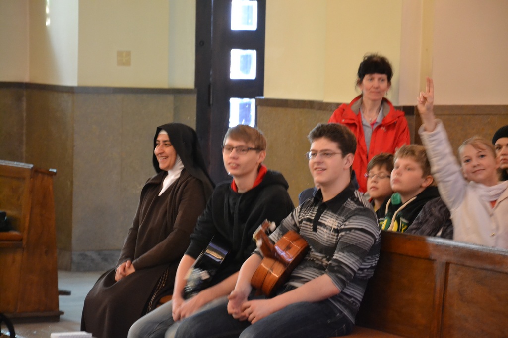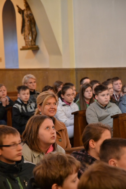 Po konferencji przyszedł czas na adorację Naj¶więtszego Sakramentu, przygotowan± przez pani± katechetkę oraz uczniów klas VI. Wspólnie modlili¶my się o wytrwało¶ć na szlaku do Nieba oraz we wszystkich intencjach Szkoły Podstawowej. Nie możemy się już doczekać na jutrzejszy, drugi dzień naszych szkolnych rekolekcji wielkopostnych.