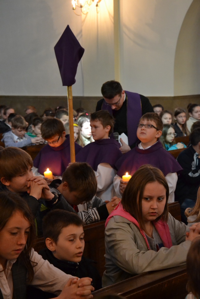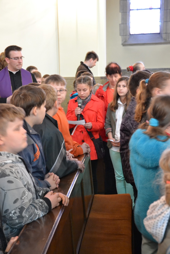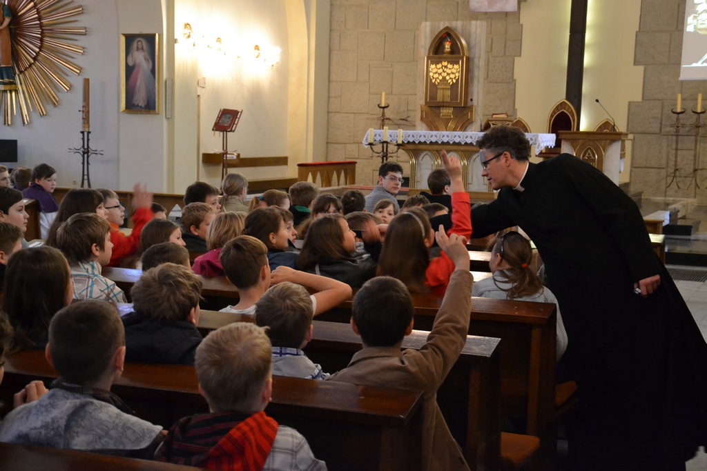 W drugim dniu naszych szkolnych rekolekcji wielkopostnych nasz rekolekcjonista, ks. Damian Copek, wskazywał na zagrożenia na naszej drodze na szczyt, którym jest Niebo. Poznawali¶my metody działania naszego przeciwnika - szatana, który próbuje nas zwie¶ć z wła¶ciwego szlaku. Wskazał na Maryję – Now± Ewę, jako tę, która pomaga nam pokonać jego zasadzki i pewnie zmierzać we wła¶ciwym kierunku. Wiele też ¶piewali¶my, a następnie uczestniczyli¶my w nabożeństwie drogi krzyżowej. Modlili¶my się w naszych intencjach oraz za nauczycieli i rodziców. Rozważania odczytywali wyznaczeni wcze¶niej uczniowie klas III i VI. Po wyj¶ciu z ko¶cioła wykonali¶my pami±tkowe fotografie poszczególnych grup uczniów, modl±cych się za misjonarzy w Szkolnym Różańcu Misyjnym. Zdjęcia wy¶lemy niebawem naszym misjonarzom, którzy na pewno uciesz± się z tego prezentu.