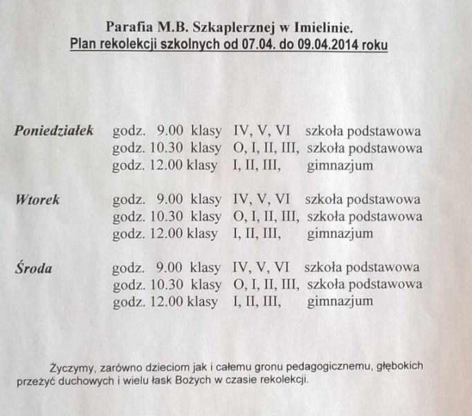Prosimy o zapoznanie się z informacj± przekazan± nam przez nauczycieli-katechetów: