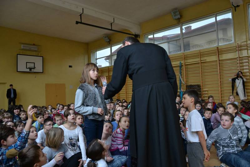 My tymczaem przypominamy w krótkiej fotorelacji, że na pocz±tku tego roku kalendarzowego go¶cili¶my w szkole o. Adama Szparę, misjonarza kombonianina.