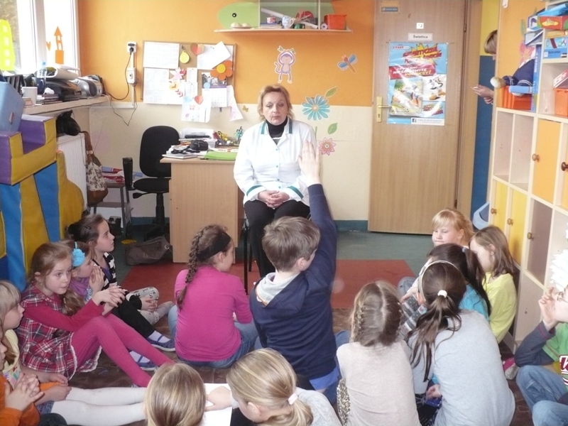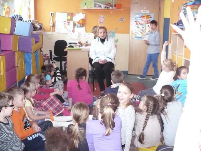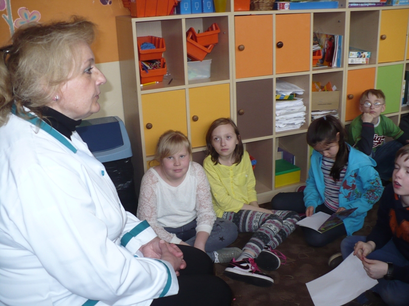 Podczas spotkania z pani± Małgorzat± Tomczok podopieczni ¶wietlicy zadawali pytania dotycz±ce jej pracy w naszej szkole oraz obowi±zków higienistki. Zapraszamy do obejrzenia fotorelacji z realizacji pierwszego zadania w ramach projektu "Dzieci ratuj± życie".