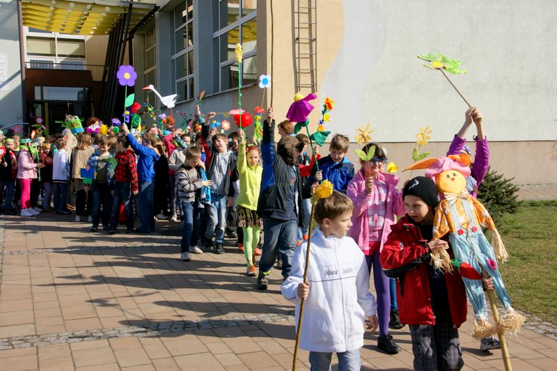 Chociaż zima w tym roku potraktowała nas łagodnie, wszyscy z niecierpliwo¶ci± czekamy, aż wokół zrobi się zielono. W naszej szkole powitanie kalendarzowej wiosny zostało przygotowane przez nauczycieli i uczniów klas I – III, którzy zgodnie z prasłowiańskim obyczajem zaplanowali obrzęd palenia marzanny. Pocz±tek przygotowań obejmował wykonanie przeróżnych wiosennych rekwizytów – powstały kolorowe kwiaty, papierowe ptaki, biedronki, motylki i transparenty z powitalnymi hasłami. Nasz szkolny zespół „Gwiazdeczki”, kierowany przez pani± Lis, od¶piewał wiosenne piosenki, a następnie nauczyciele i uczniowie, nios±c marzannę przeszli ulicami Imielina. Mieszkańcy naszego miasta mogli podziwiać barwny korowód i mieli okazję, by przypomnieć sobie dawne obrzędy maj±ce przyspieszyć odej¶cie zimy. Warto wiedzieć, że kiedy¶ każdemu zależało, aby obchód z marzann± przeszedł koło jego zagrody, gdyż tylko w ten sposób zabierała ona z sob± choroby, zimę i zło z domu. Po powrocie na teren szkoły Szymon z klasy III c, jako przedstawiciel uczniów, posadził na obrzeżu boiska dwa nowe drzewka, które będ± pami±tk± tego szczególnego dnia. Kulminacyjnym punktem powitania wiosny było oczywi¶cie podpalenie słomianej kukły marzanny. Towarzyszyło mu uczniowskie skandowanie „żegnaj zimo, witaj wiosno”. Miejmy nadzieję, że wiosenna pogoda już nas nie opu¶ci.