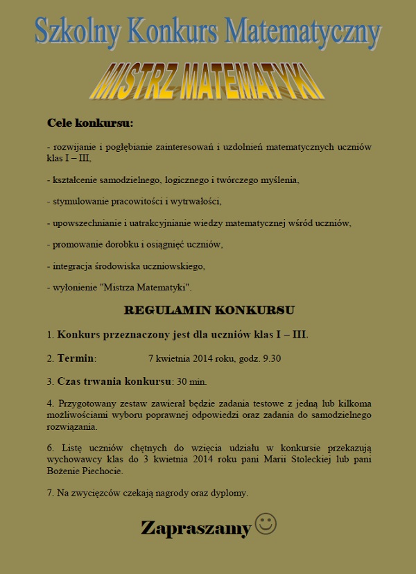 Szczegóły imprezy już wkrótce na naszej stronie i szkolnym Facebooku.
