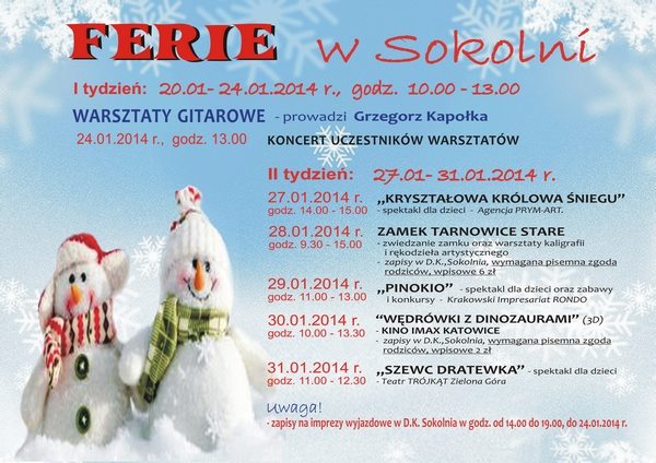 od 20 stycznia do 2 lutego 2014 r. Życzymy udanego wypoczynku i dobrej zabawy, a także przypominamy o zasadach bezpieczeństwa!