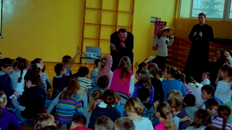 Misjonarz bardzo ciekawo opowiadał, pokazywał zdjęcia i bardzo chciał usłyszeć wiele pytań. I tak też było. Dzieci i młodzież, ł±cznie z nauczycielami, zadawali przeróżne pytania. Jakiego drugiego języka ucz± się Chińczycy? Jak odczytać pismo chińskie i jak się go nauczyć? Lecz najbardziej nieoczekiwanym pytaniem dla misjonarza było, gdy uczeń spytał, czy w Chinach jedz± koty. Misjonarz odpowiedział, że niektóre plemienia jedz± koty. Lecz przecież każdy kraj ma swoj± własn± kulturę i tradycję.