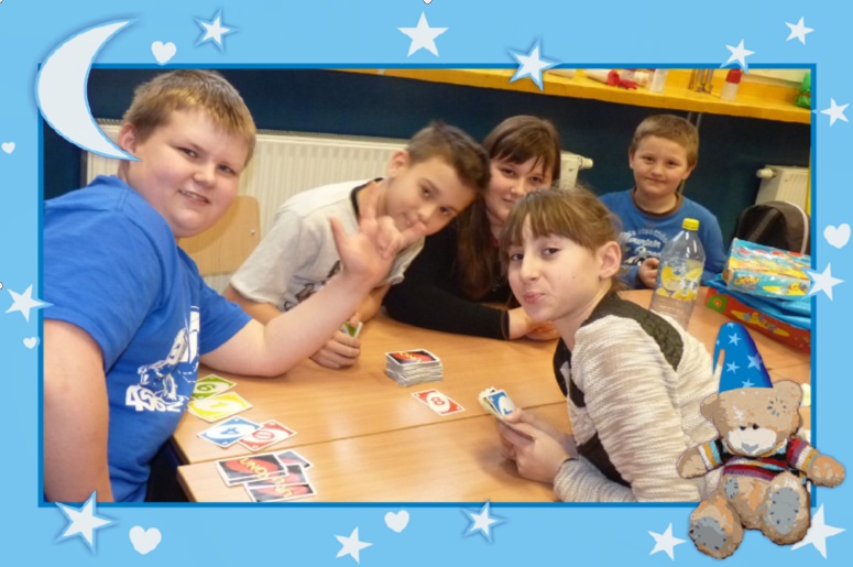 -Na ¶wietlicowych grach i zabawach m.in. rozgrywkach w „Uno”, rozwi±zywaniu zagadek, rebusów; kalamburach zimowych; turnieju warcabowym i grze w „Chińczyka”, zajęciach konstrukcyjnych, relaksie przy muzyce, tańcach,