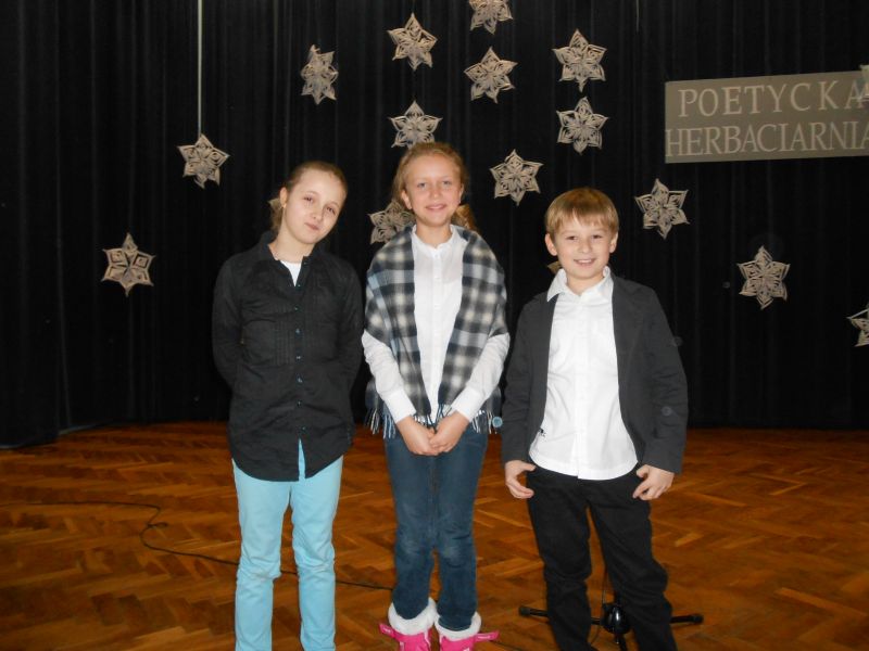 6 grudnia w Powiatowym Zespole Szkół w Bieruniu odbył się VII Powiatowy Konkurs Recytatorski "Poetycka Herbaciarnia". Konkurs przeznaczony jest dla uczniów szkół podstawowych, gimnazjalnych i ponadgimnazjalnych powiatu bieruńsko – lędzińskiego. Tegoroczna edycja po¶więcona została twórczo¶ci Juliana Tuwima, którego rok wła¶nie obchodzimy. Z prawdziw± dum± i rado¶ci± pragniemy ogłosić, że nasi uczniowie - Maria Paluch z klasy 5 "c" i Pascal Kuc z klasy 4 "a" zajęli w nim (odpowiednio) III i II miejsce. Serdecznie gratulujemy!