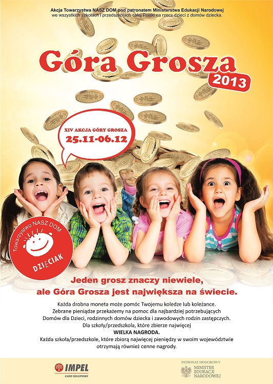 25 listopada samorz±d uczniowski rozpocz±ł zbiórkę monet w ramach corocznej akcji "Góra Grosza". Szczegóły i regulamin: http://www.towarzystwonaszdom.pl/?sub=8 Zachęcamy do wł±czenia się w to przedsięwzięcie!