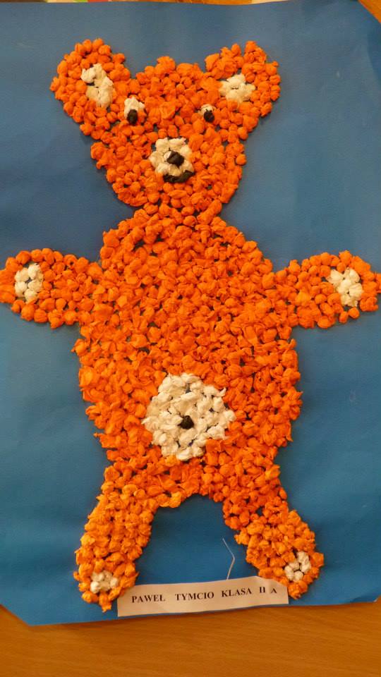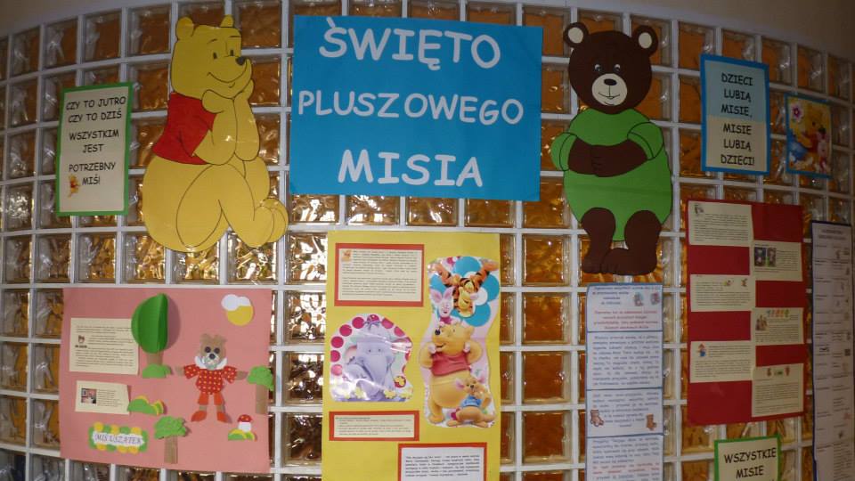 Od 2012 r. wszystkie misie maj± swoje ¶więto. W kalendarzu ¶wi±t traktowanych z lekkim przymrużeniem oka zapisano pod dat± 25 listopada ¦wiatowy Dzień Pluszowego Misia. Biblioteka Szkoły Podstawowej w Imielinie zaprosiła misie małe i duże, maskotki wzorowane na popularnych bajkach i anonimowe misie z naderwanym uszkiem. ٱczyło je jedno - były to UKOCHANE misie naszych najmłodszych uczniów. Zebrała się ich spora gromadka i prawie każda misiowa mama i tata codziennie odwiedzali swoje misie! Do biblioteki zaprosili¶my też grupę przedszkolaków-sze¶ciolatków, którzy maj± zajęcia w budynku w pobliżu szkoły, wraz z ich wychowawczyniami. Starsi koledzy przygotowali dla przedszkolaków inscenizację o misiach. Były też zabawy, konkurs i wesołe wierszyki o misiach. Dzieci przypomniały sobie postacie znanych misiów, bohaterów ksi±żek i filmów, poznały historię misia-zabawki. Dużo rado¶ci sprawiło im wykonanie portretów misia technik± orgiami. Mali go¶cie poradzili sobie ¶wietnie pracuj±c pod okiem pani Agnieszki Pawelec, wychowawczyni ¶wietlicy, która z powodzeniem przekazuje uczniom swoj± pasję i zachęca do zabaw t± technik±. Wędruj±c na zajęcia plastyczne do ¶wietlicy szkolnej mali go¶cie zajrzeli do klas, gdzie ucz± się pierwszoklasi¶ci, odwiedzili sekretariat i gabinet pani dyrektor. Spotkanie było naprawdę „misiowo” udane. Misie wracaj± już do domu, każda misiowa mama/tata dostanie dyplom za udział misia w wystawie.