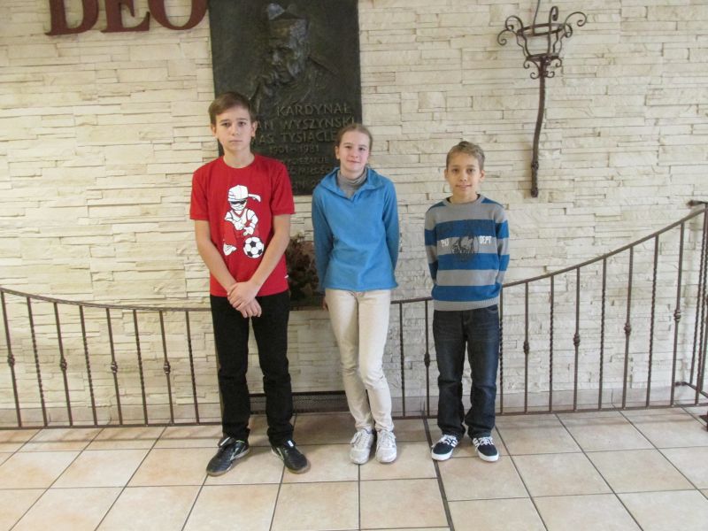 Michał Synowiec VI b, Marcel ¦cierski VI c, Weronika Mazurkiewicz VI d -12 p.