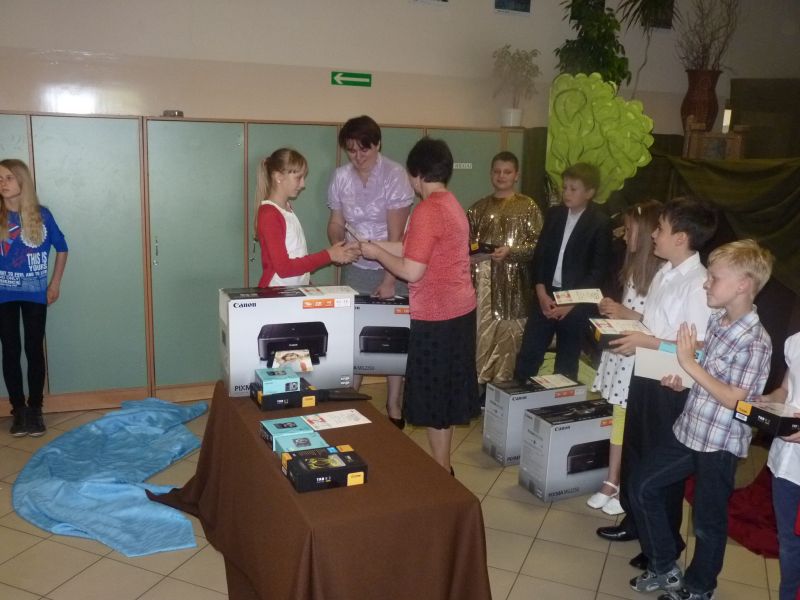 7 czerwca podsumowali¶my projekt "Wiem, umiem więcej...". Nagrody otrzymali uczniowie klas 2-6, którzy osi±gnęli najwyższe wyniki w konkursie szybkiego czytania (pod uwagę brane było zarówno tempo jak i poziom zrozumienia tekstu). Zwycięzcy otrzymali wspaniałe nagrody - tablety, drukarki i aparaty fotograficzne. Nagrody wręczyła p. Mirosława Strojny oraz p. Mariola Orlik z UM Imielin.