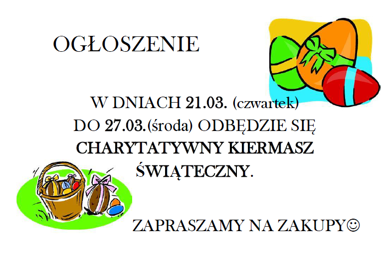 Zapraszamy na charytatywny kiermasz przedmiotów ręcznie wykonanych przez uczniów, nauczycieli, rodziców i przyjaciół szkoły.