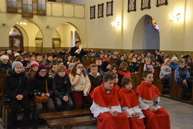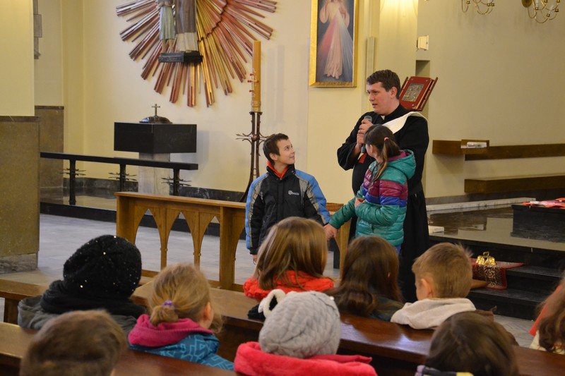 O godz. 10.00 rozpoczęła się Msza ¶w. O. Maciej przypomniał nam o potrzebie modlitwy za misje i misjonarzy, a także serdecznie podziękował nam w imieniu tych wszystkich, których wspieramy w ich posłudze misyjnej (nie wszyscy mogli przyjechać do Polski!). Następnie wspólnie bawili¶my się m .in. tańcz±c, ¶piewaj±c i przeci±gaj±c linę. Potem podzielili¶my się na grupy: jedna ogl±dała ciekaw± prezentację zdjęć i filmów z misjach w Ghanie, a druga robiła ¶wi±teczne, wielkanocne kartki z życzeniami, które po¶lemy do naszych misjonarzy. Spotkanie zakończyło się ok. 13.00 wspóln± modlitw± różańcow± za misje.