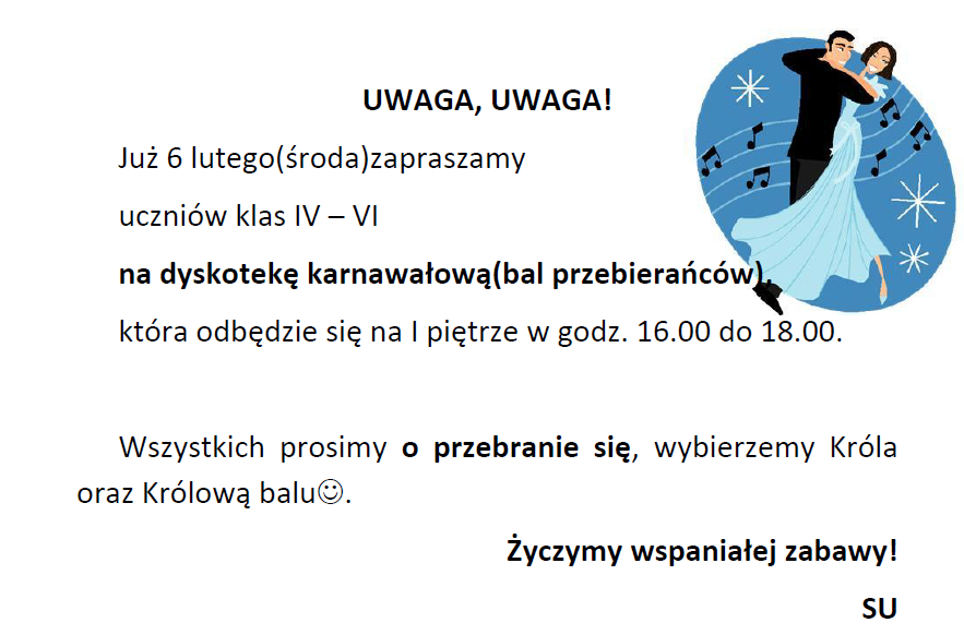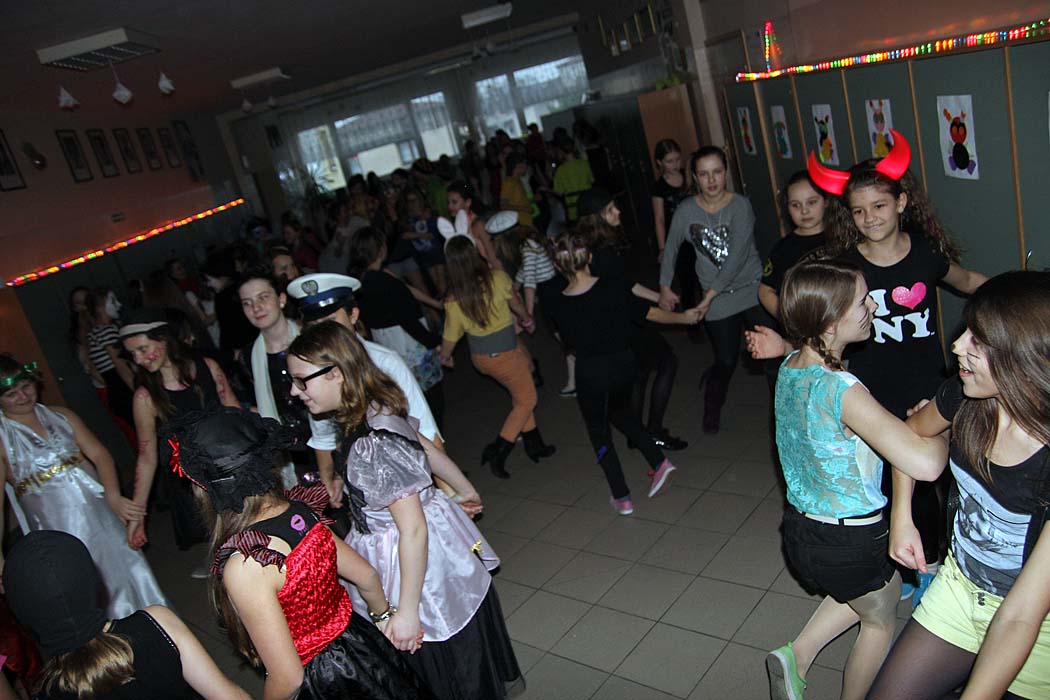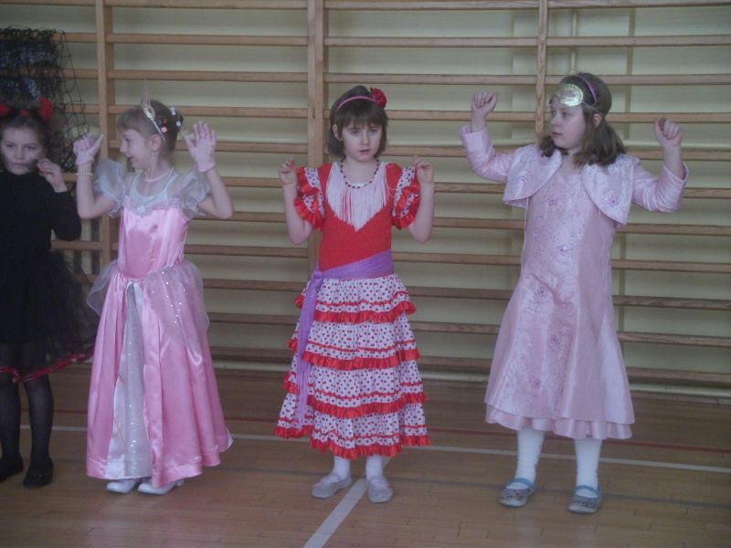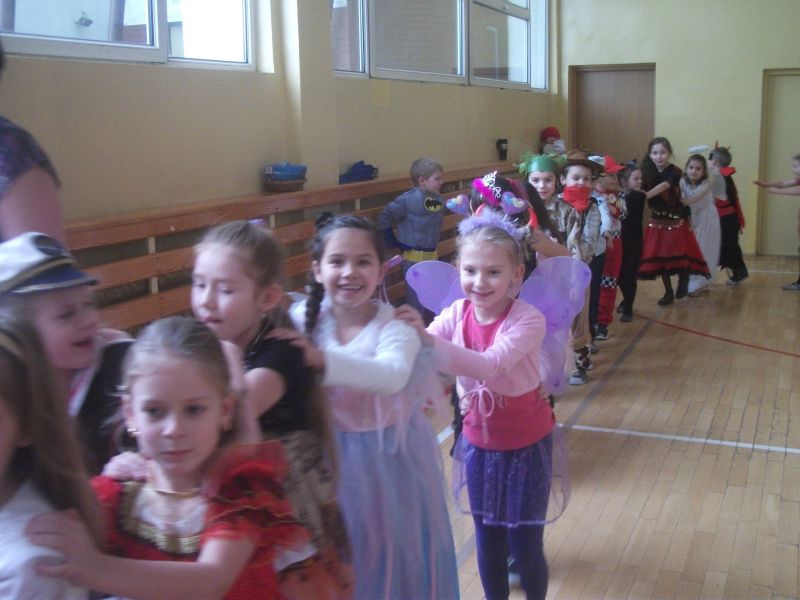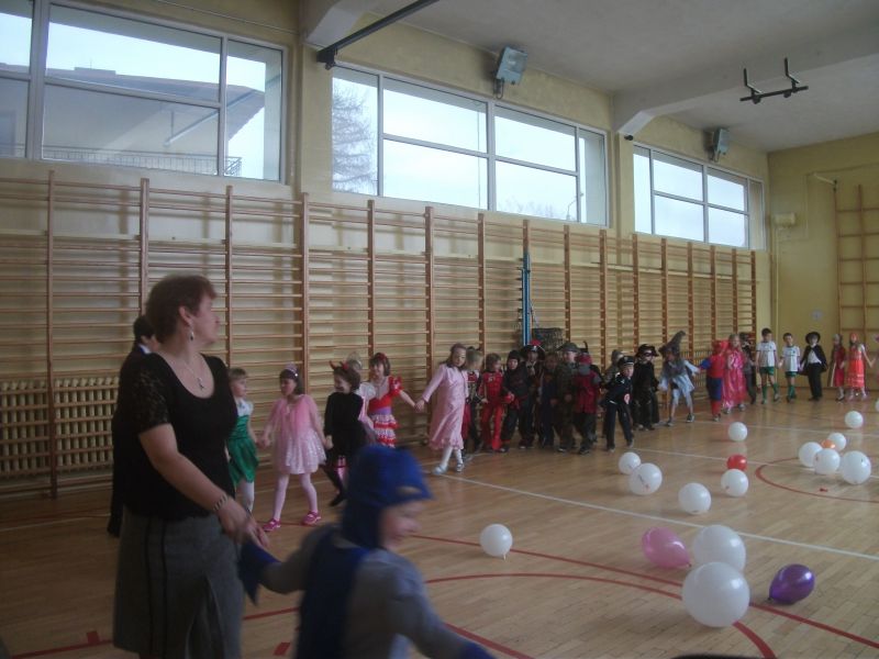 Coroczny bal karnawałowy dla młodszych klas to wyczekiwany czas rado¶ci i zabawy. To wła¶nie podczas balu karnawałowego spełniaj± się wszystkie marzenia i każde dziecko może wcielić się w postać z bajki. W ostatnich dniach karnawału sala gimnastyczna zamieniła się w zaczarowan± krainę pełn± wróżek, motylków, rycerzy i innych znanych postaci z bajek i kreskówek. Zorro tańczył z księżniczkami, aniołami, rycerze, królewny i diabełki w towarzystwie wróżek, marynarza, kotków, wojowników Ninja bawili się w takt modnych przebojów. Przedstawiciele wszelkich służb mundurowych w towarzystwie biedronek, supermana, słodkich księżniczek i groĽnych piratów bawili się ¶wietnie! Każdy był jedyny, niepowtarzalny i – co najważniejsze – zadowolony! Pomiędzy konkurencjami i tańcami dzieci częstowały się przygotowanymi dla nich słodko¶ciami i napojami. Dobra zabawa i wspaniały humor towarzyszyły uczniom przez cały bal.