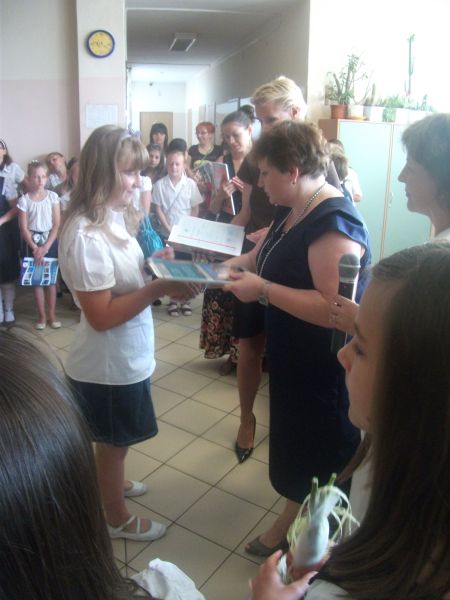 za ¶redni± powyżej 5,0. Specjalnym laurem uhonorowany został Łukasz Wcisło, który w minionym roku szkolnym wygrał prestiżowe kuratoryjne konkursy przedmiotowe. Pochwała należy się jednak wszystkim tegorocznym absolwentom. Na sprawdzianie szóstoklasisty uzyskali oni bardzo wysokie wyniki, które uplasowały ich znacznie powyżej ¶redniej wojewódzkiej i krajowej.