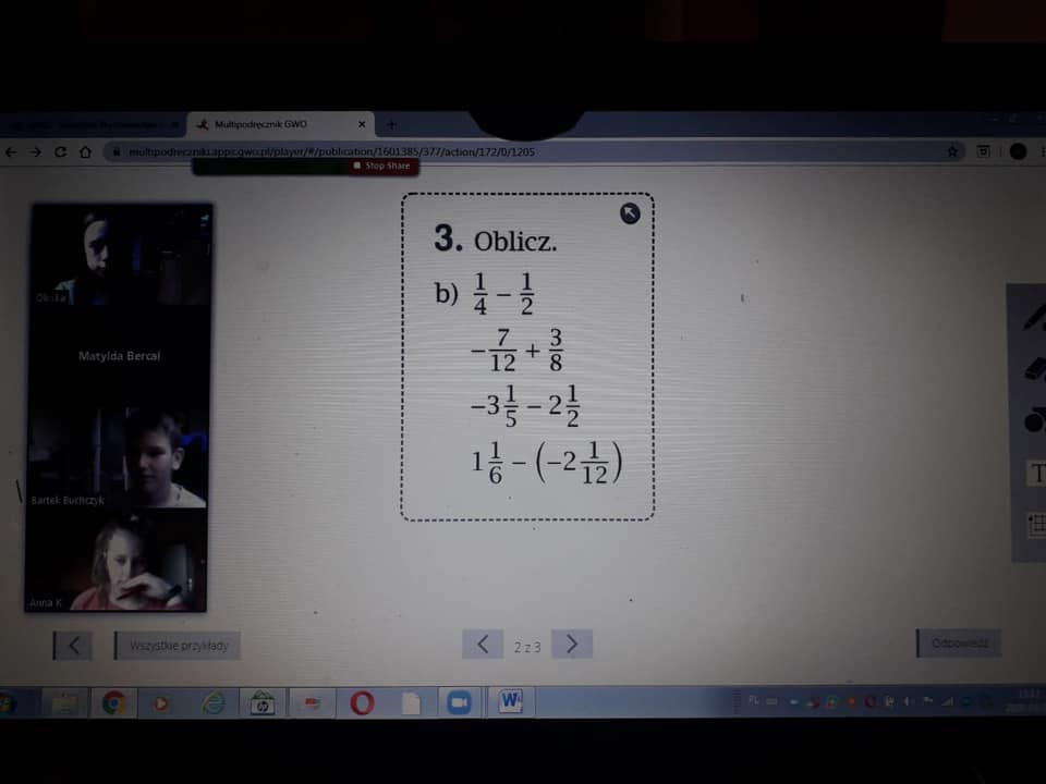 na lekcjach matematyki w klasach IV-VI: