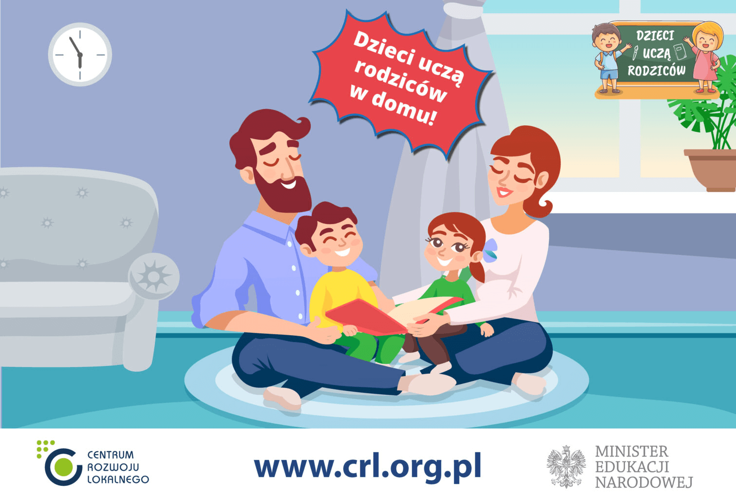 Dla rodziców, w ramach akcji projektowej, przygotowany został filmik pt. „Wychowanie dzieci – 10 porad” oraz propozycje zajęć w okresie pandemii COVID - 19 zamieszczonych na stronie internetowej Centrum Rozwoju Lokalnego „Dzieci uczą rodziców” https://crl.org.pl/2020/03/12/dzieci-ucza-rodzicow-w-domu/
