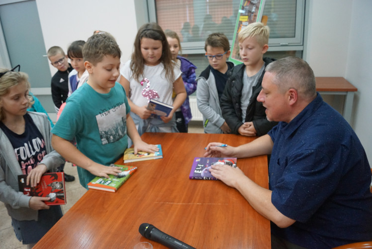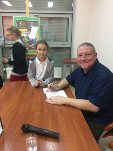 Po przeczytaniu przez trzecioklasistów lektury „Sposób na Elfa” w Bibliotece Miejskiej odbyło się spotkanie z autorem książki Marcinem Pałaszem. W spotkaniu wzięła udział klasa IIIb i III c. W trakcie spotkania można było podyskutować z pisarzem, zakupić jego najnowsze dzieła wraz z autografem, czy zrobić pamiątkowe zdjęcie.