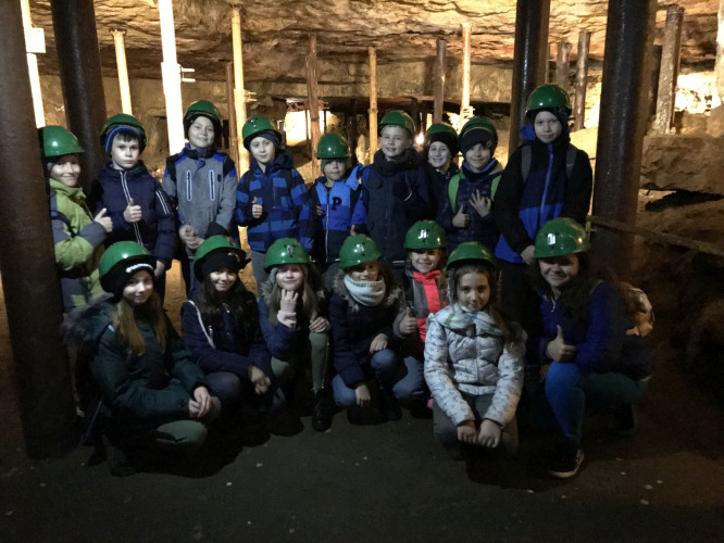 Zwiedzanie rozpoczęliśmy się od nowoczesnego centrum edukacji w Muzeum Górnictwa, następnie razem z przewodnikiem zjechaliśmy na głębokość 40,5 m, gdzie wędrując labiryntami korytarzy, zobaczyliśmy wykute w skale przodki górnicze, chodniki transportowe i potężne komory powstałe na przełomie XVIII i XIX w.