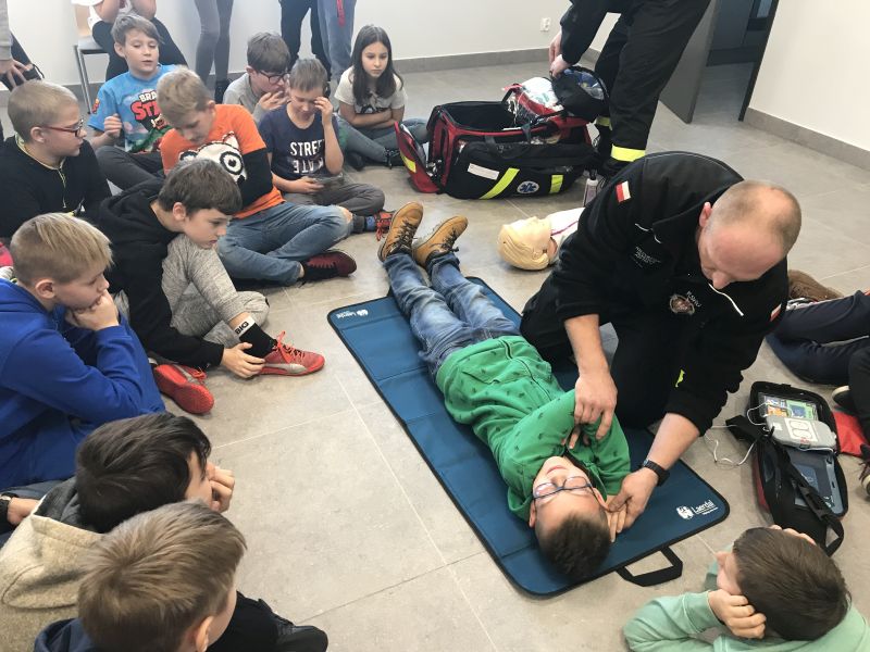 15 listopada klasy 5a i 5c odwiedziły nową siedzibę Ochotniczej Straży Pożarnej w Imielinie. Uczniowie przeszli szkolenie z pierwszej pomocy przedmedycznej oraz zwiedzili budynek. To była niesamowita wizyta! Bardzo dziękujemy panom Arturowi Maronie i Krzysztofowi Kostce za tak wspaniałe spotkanie!