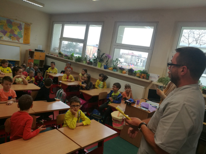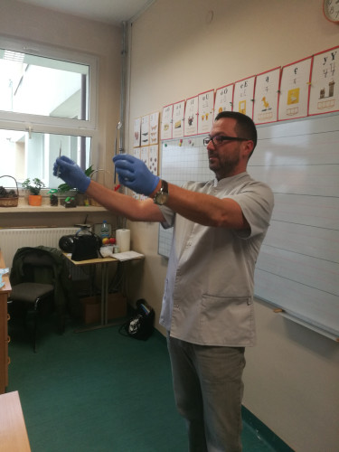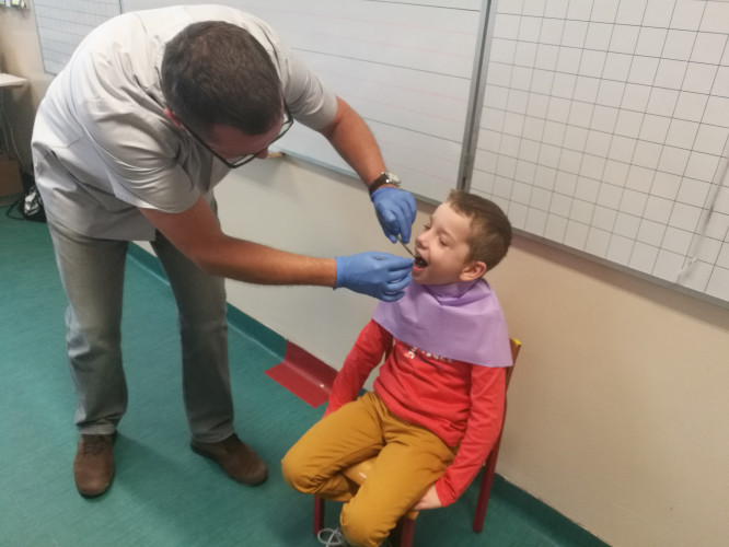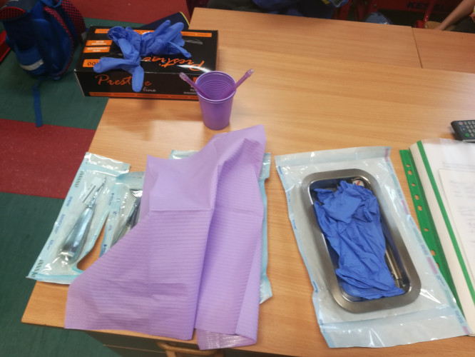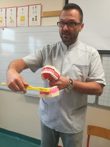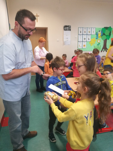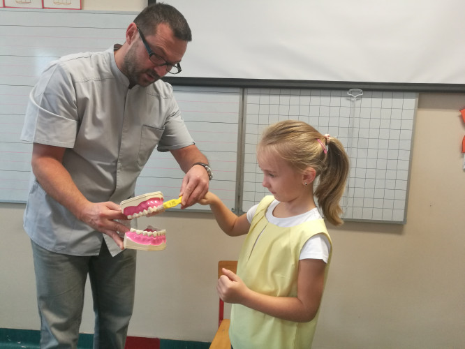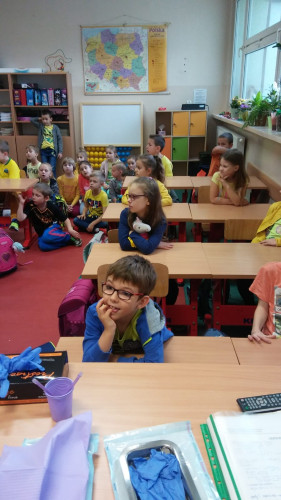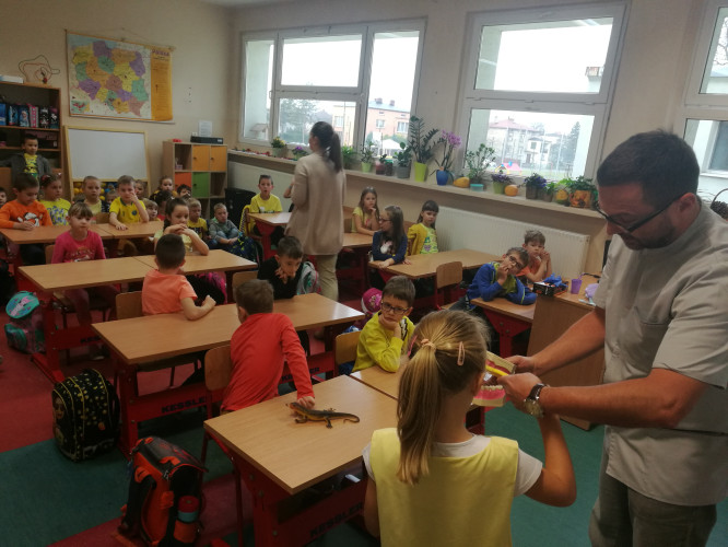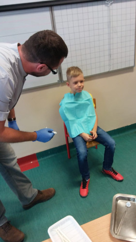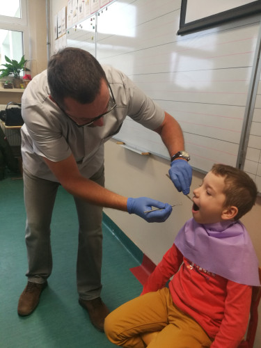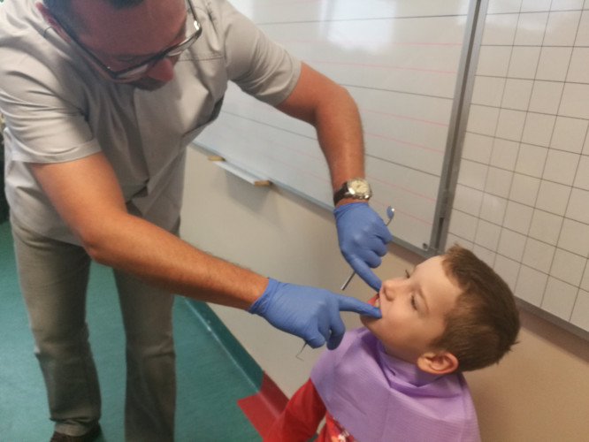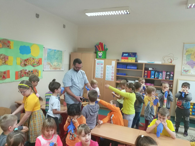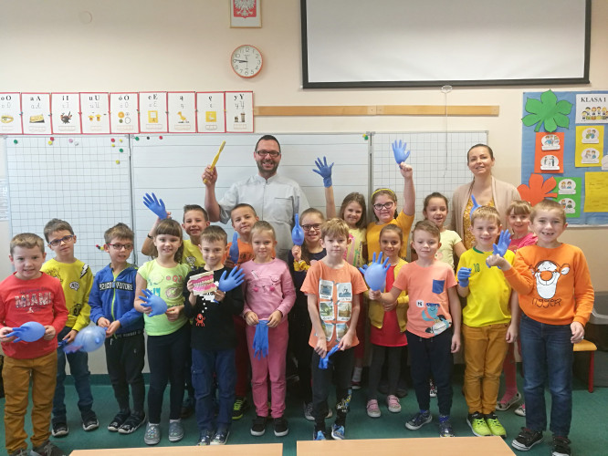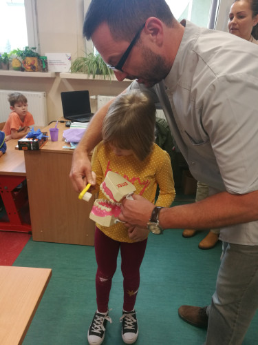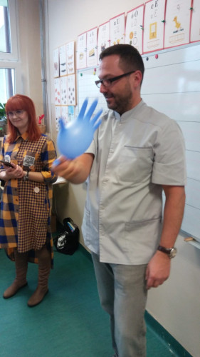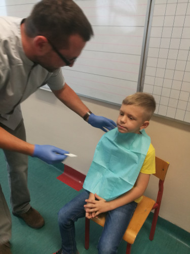 W ramach doradztwa zawodowego, naszych pierwszoklasistów odwiedził gość specjalny – lekarz, chirurg stomatolog, pan Jarosław Kokoszczyk - tata jednego z naszych uczniów. Dzieci dowiedziały się jak wygląda praca stomatologa, jak dbać o jamę ustną, co jeść, żeby mieć zdrowe zęby, jak je prawidłowo myć, bo to też jest sztuka :-). Mogły również zobaczyć jakich narzędzi używa stomatolog w swojej pracy. To była bardzo ciekawa i cenna lekcja.