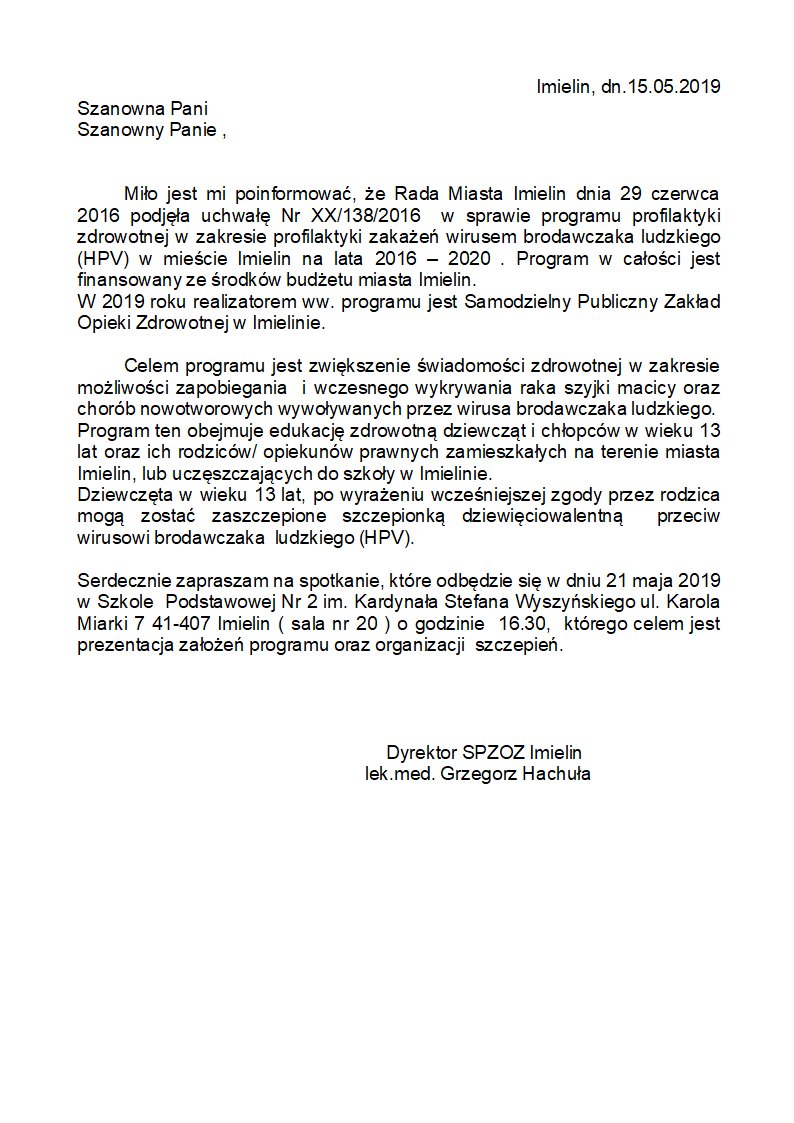 Rodziców uczniów klas VI zapraszamy na spotkanie w ramach programu profilaktycznego szczepień HPV na godzinę 16.30- sala nr 20 ( szczegółowe informacje poniżej) .