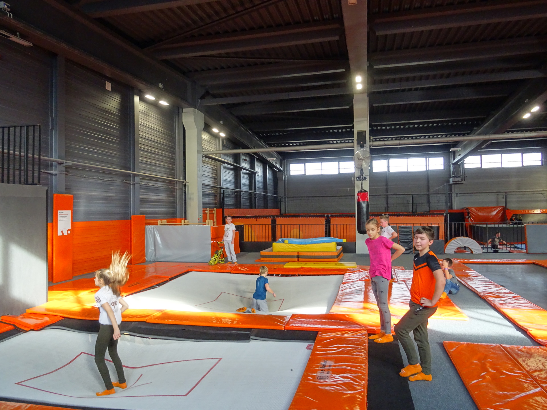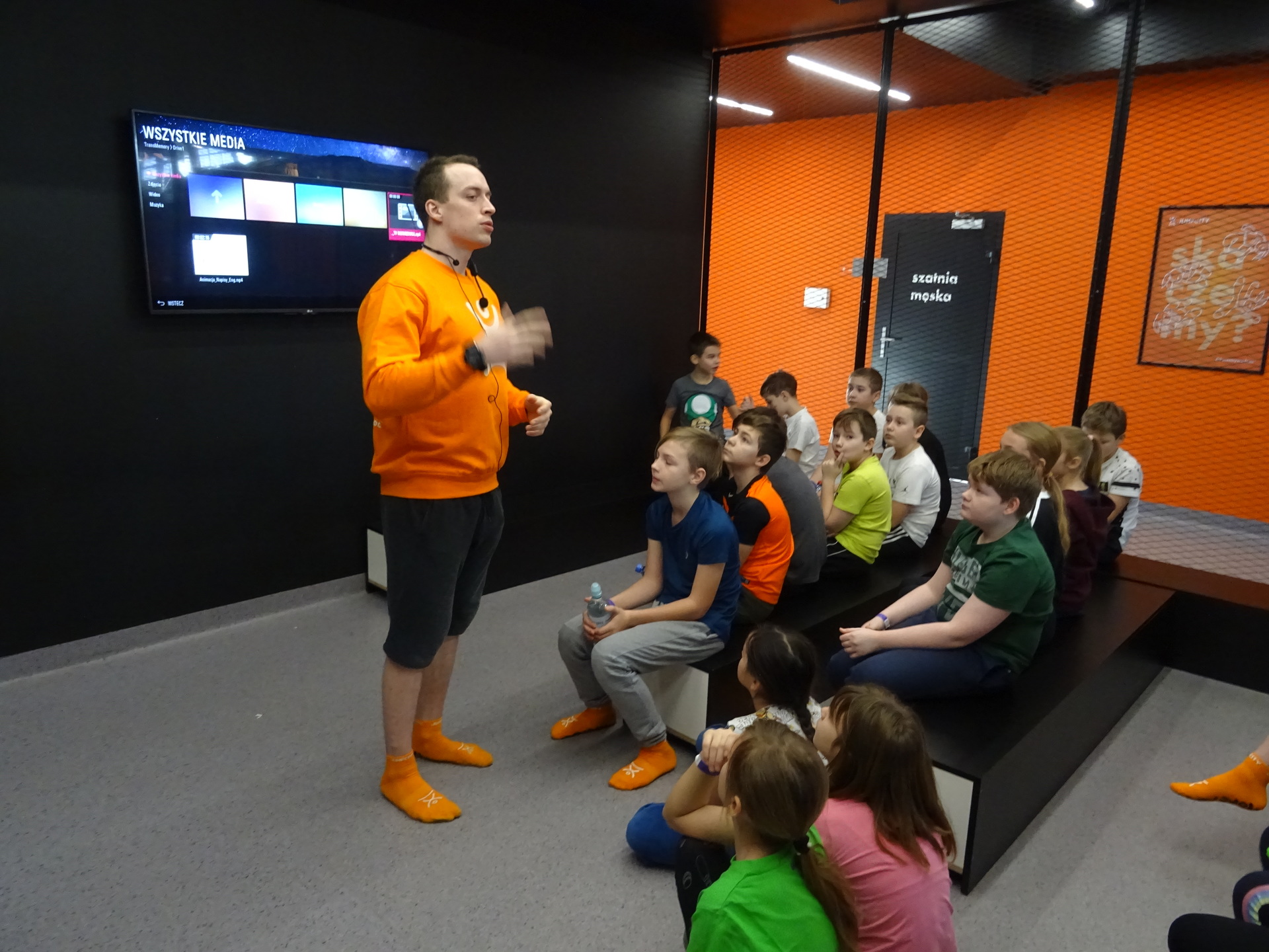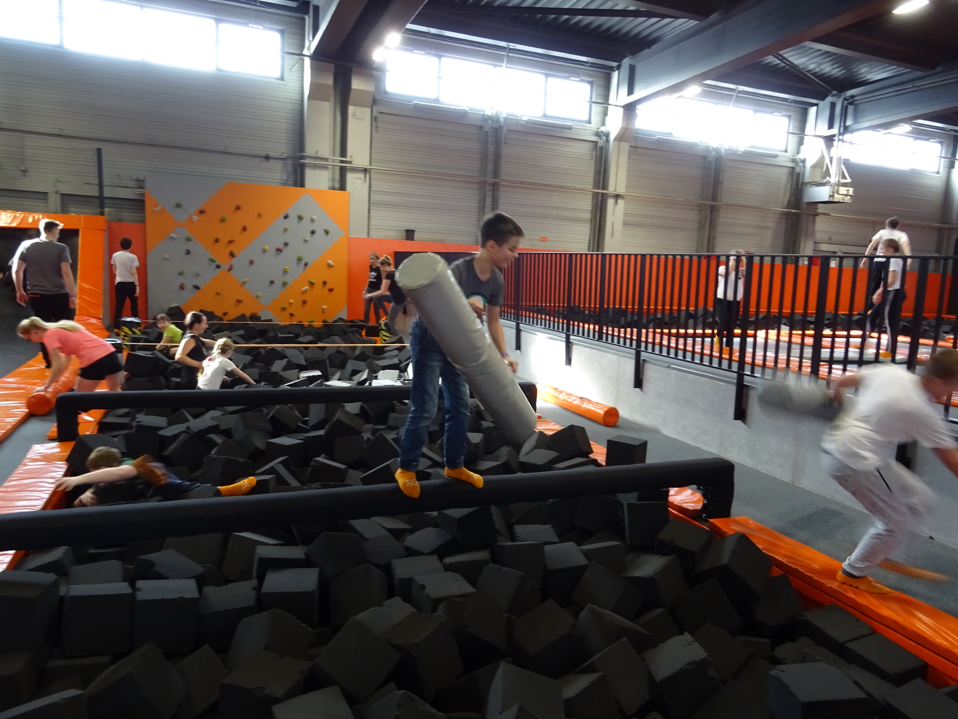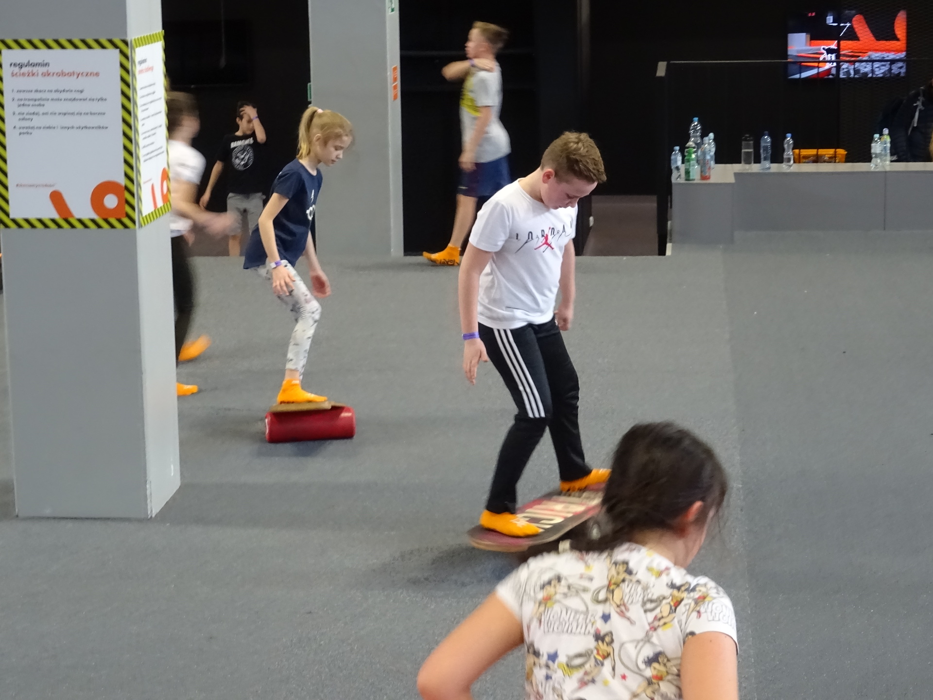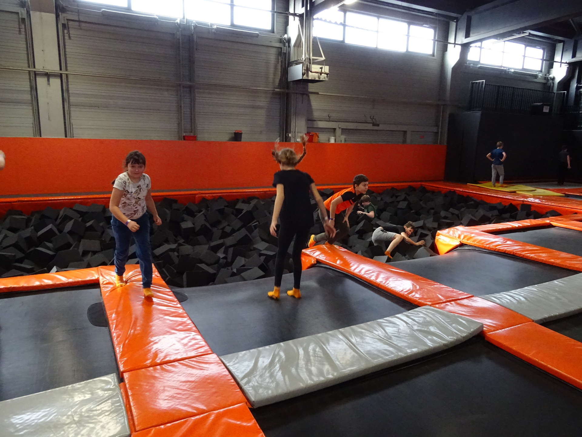 W parku trampolin po zapoznaniu się z zasadami bezpieczeństwa i kultury odbyła się wspólna rozgrzewka na trampolinach prowadzona przez trenera. Po niej każdy próbował swych sił na różnego rodzaju ścieżkach m.in. strefa gladiatorów, basen z gąbkami, trampolina sportowa, ścieżki akrobatyczne. Chętni próbowali swych sił na arenie do zbijaka.