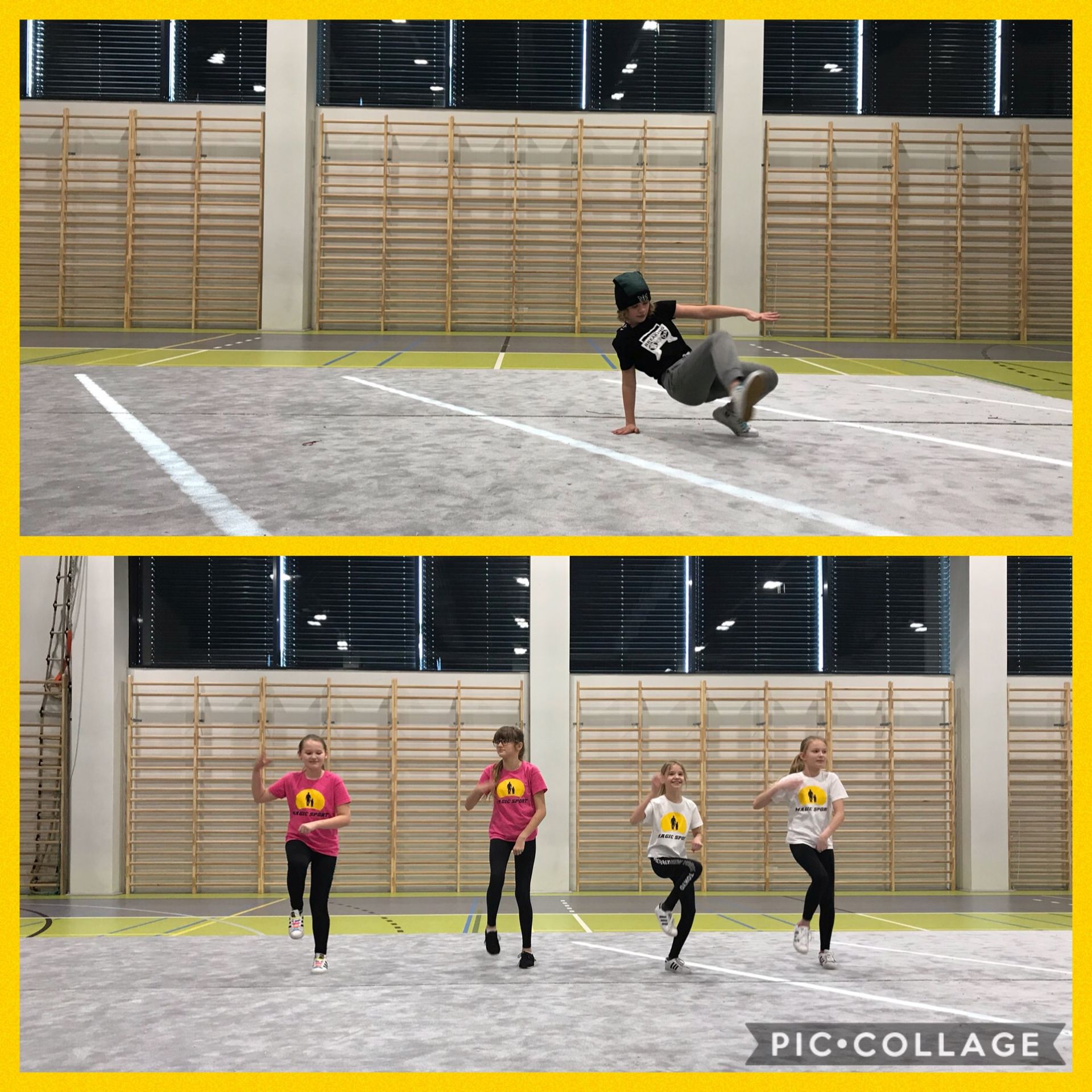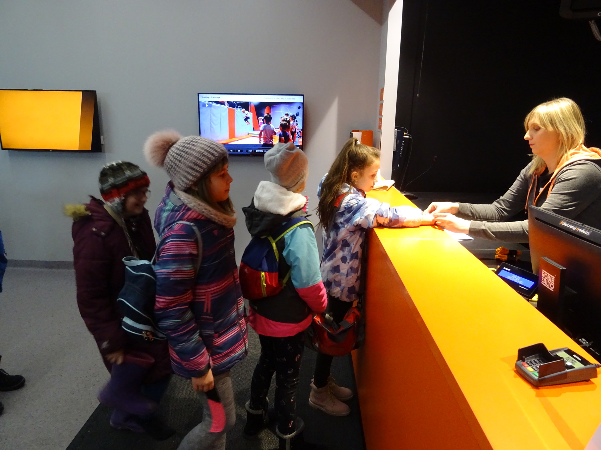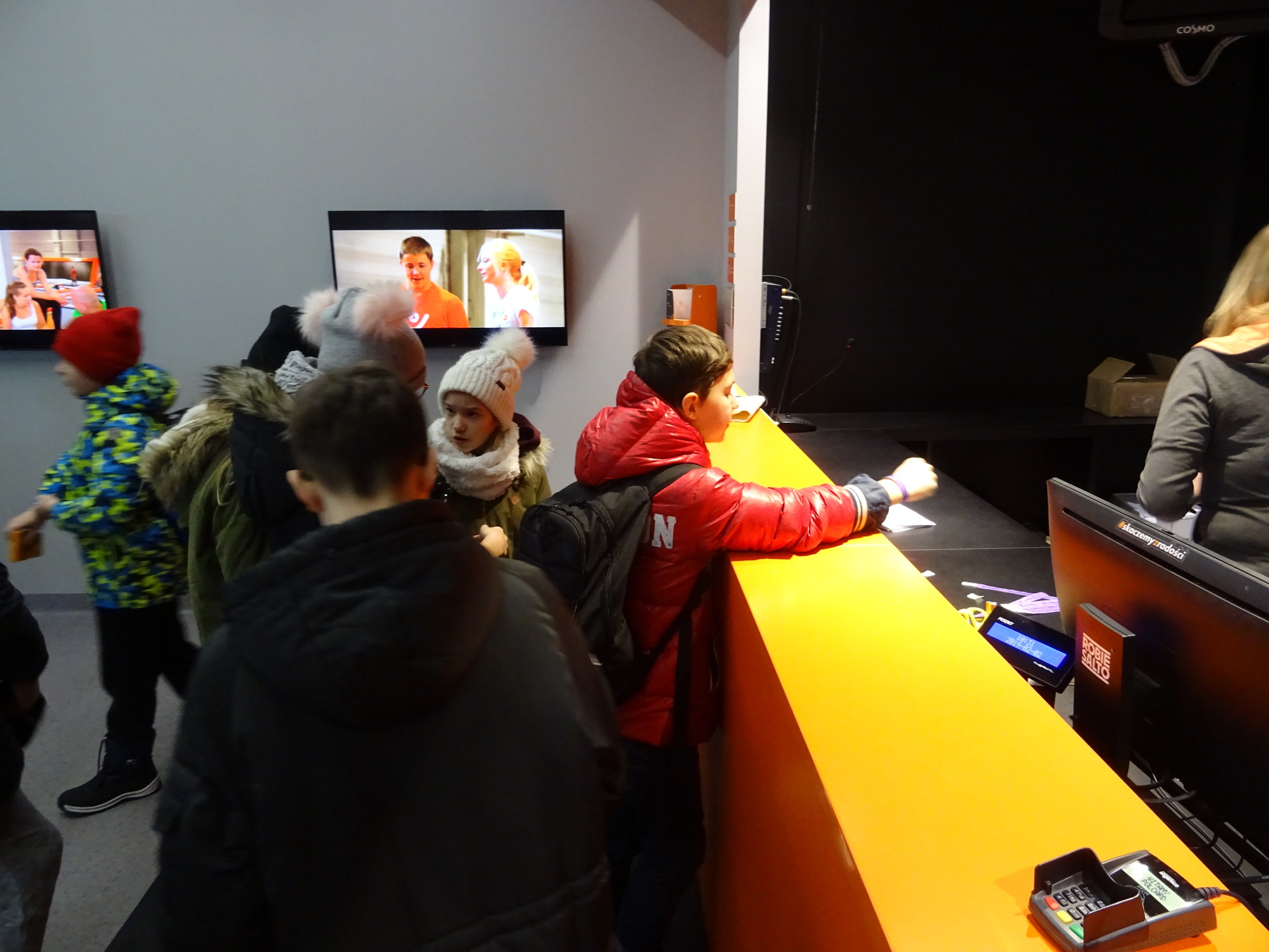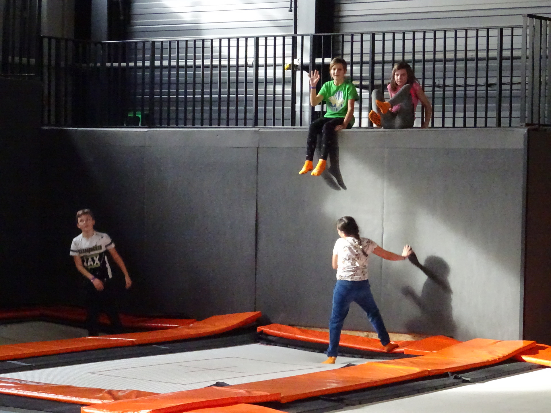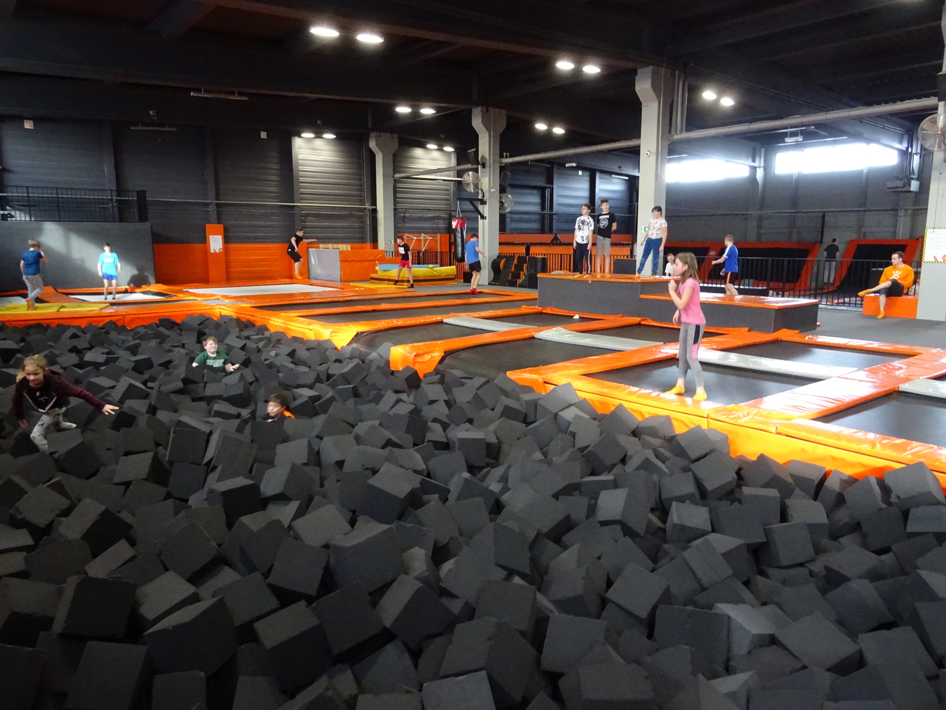 W parku trampolin po zapoznaniu się z zasadami bezpieczeństwa i kultury odbyła się wspólna rozgrzewka na trampolinach prowadzona przez trenera. Po niej każdy próbował swych sił na różnego rodzaju ścieżkach m.in. strefa gladiatorów, basen z gąbkami, trampolina sportowa, ścieżki akrobatyczne. Chętni próbowali swych sił na arenie do zbijaka.