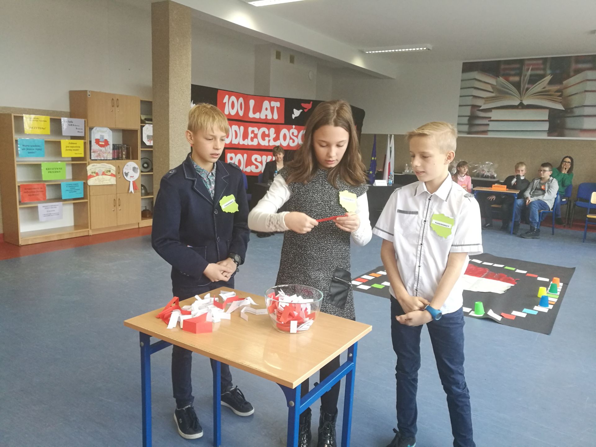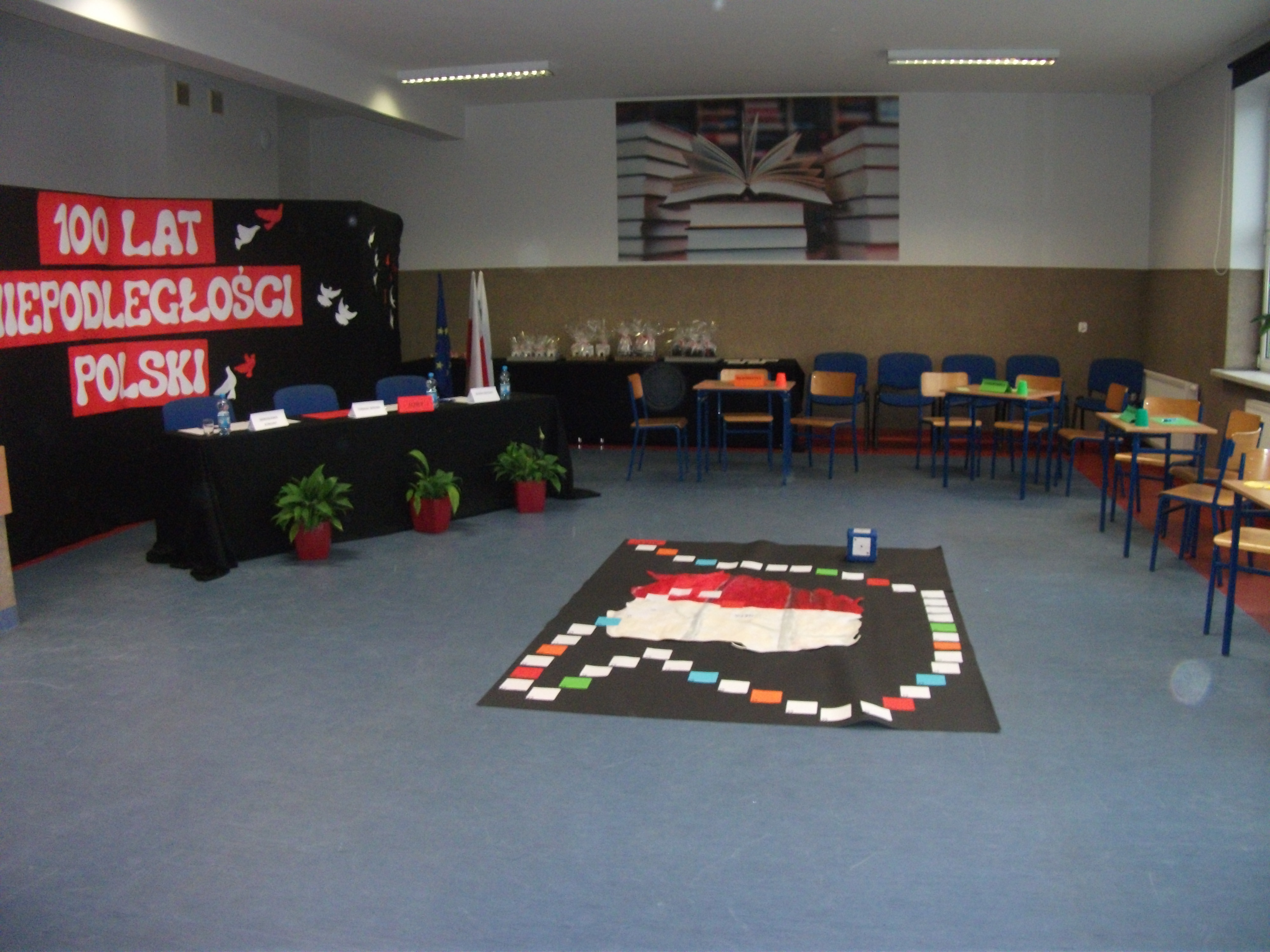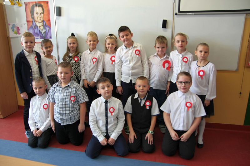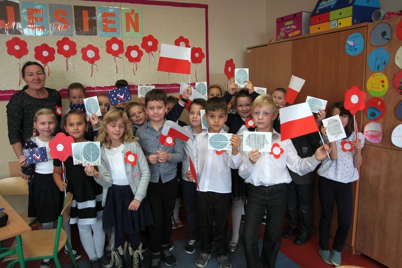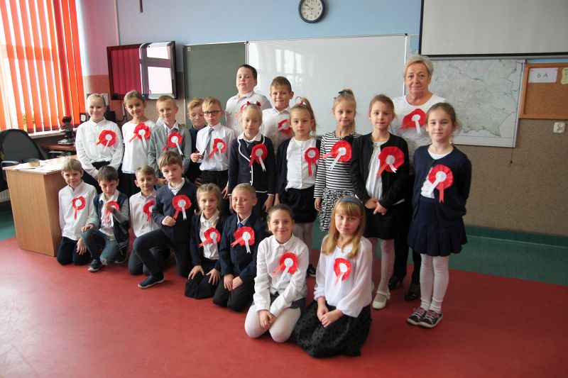 W ramach zajęć w szkole uczniowie przygotowali biało-czerwone chorągiewki i kotyliony oraz oglądali film dydaktyczny: „Przystanek niepodległość”, poruszający tematykę odzyskania przez Polskę Niepodległości.