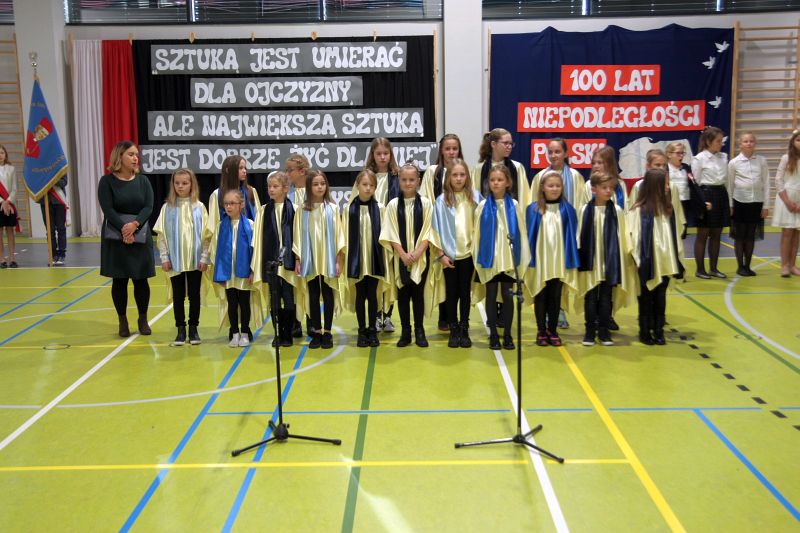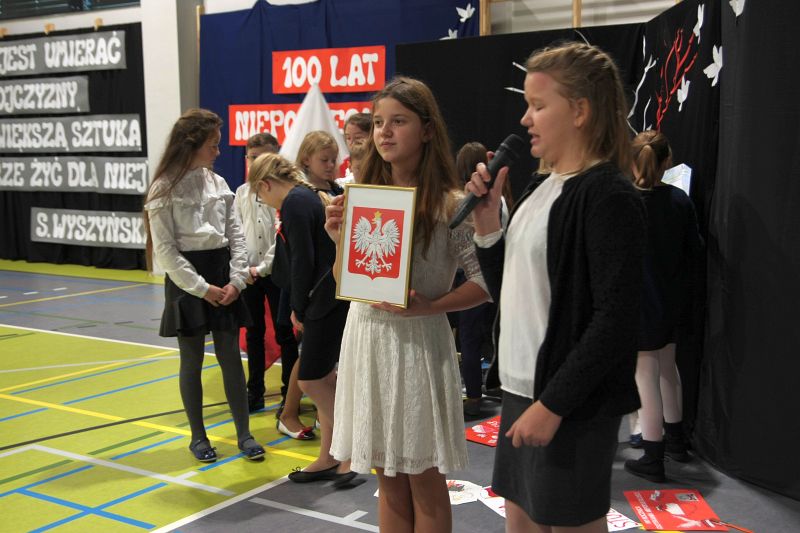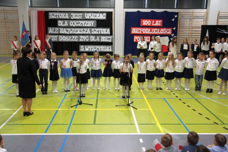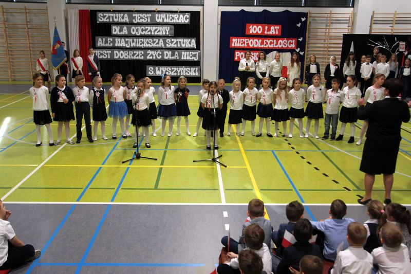 Program akademii wypełniły wspomnienia wydarzeń i postaci, które przyczyniły się do tego, że Polska po 123 latach niewoli odzyskała wolność. Uzupełnieniem była patriotyczna dekoracja oraz piosenki w wykonaniu szkolnych zespołów „Koralinki” oraz „Gwiazdeczki” .