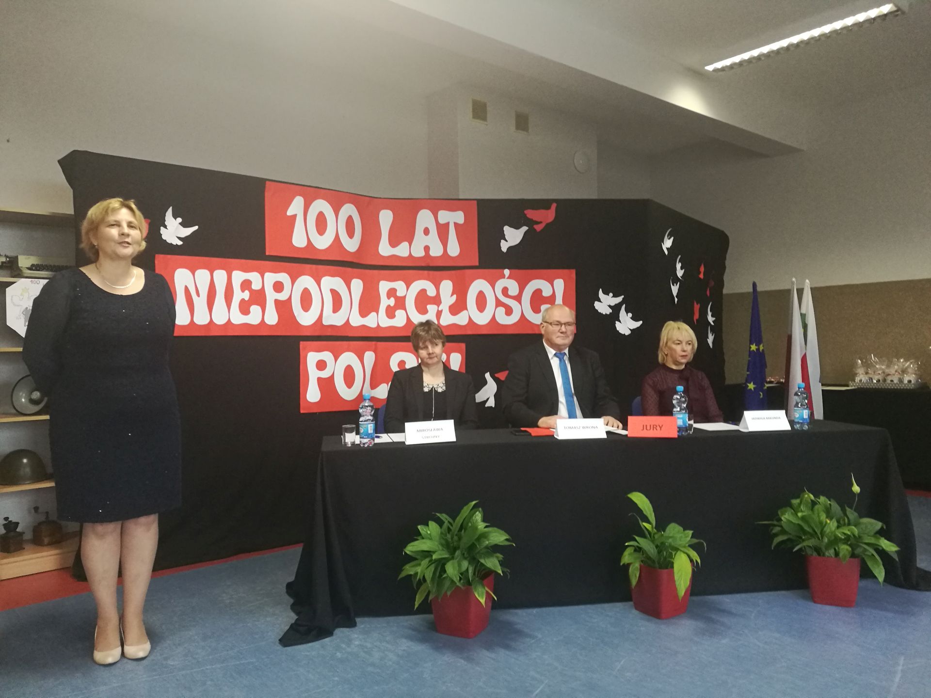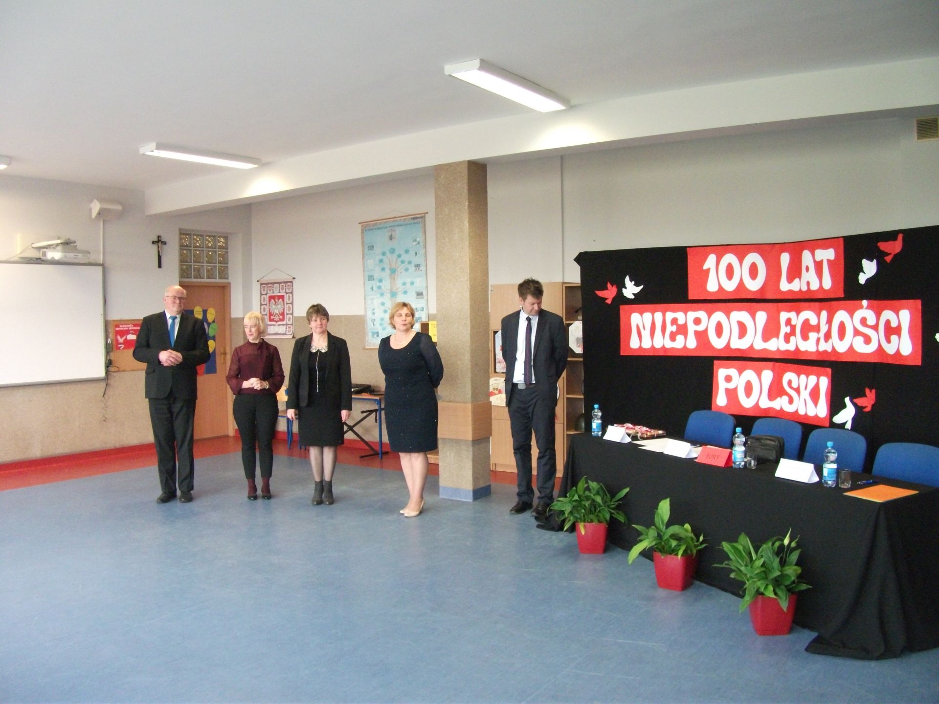 Uroczystą akademię poprzedził recital pieśni patriotycznych zaprezentowanych przez artystów zaproszonych specjalnie na tę okazję do naszej szkoły.