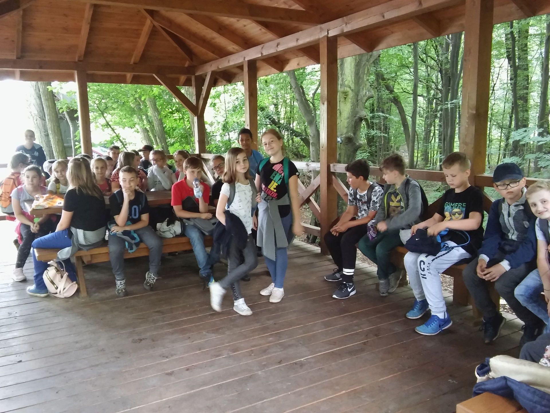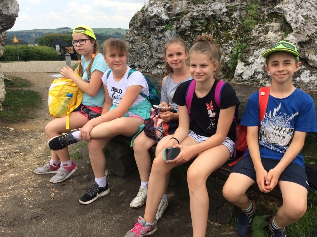 Dwudniowa wycieczka klasy VIc i VId obfitowała nie tylko w piękną pogodę (wręcz upalną), ale również w wiele atrakcji. Szóstoklasiści spacerowali po urokliwej Jurze Krakowsko - Częstochowskiej - Morsko, odkrywka skalna, góra Apteka, Mirów-Bobolice, badanie czystości wody... Wydawałoby się, że takie intensywne wyjścia w plener zmęczyły uczniów - nic jednak błędnego, po wzmocnieniu się pizzą, znaleźli siłę do zabaw na świeżym powietrzu:)