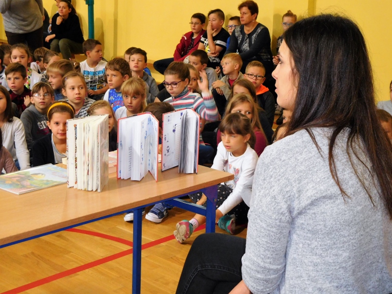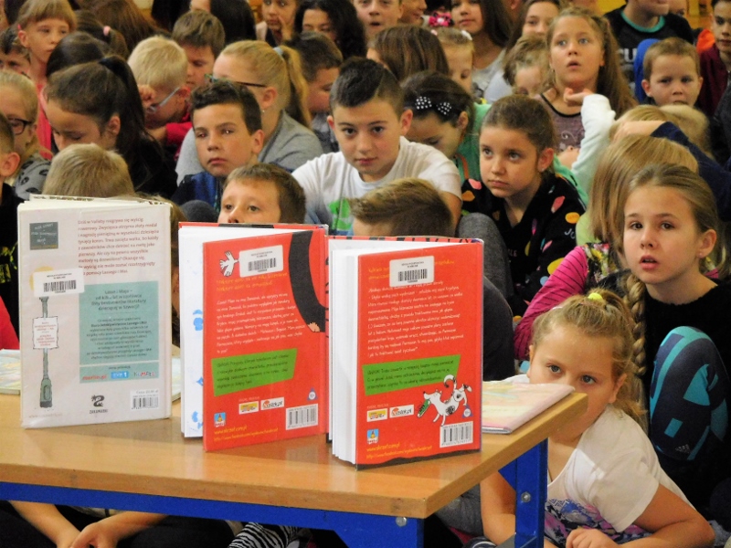Pan Kulikowski zachęcał uczniów do korzystania z zasobów bibliotecznych, ponieważ co roku wydaje się wiele ciekawych pozycji dla dzieci i młodzieży. Chociaż nauczyciele również zachęcają nas – uczniów, do czytania książek, to ciągle jednak nie wszyscy są do tego przekonani. Może muszą po prostu do tego dorosnąć? :)