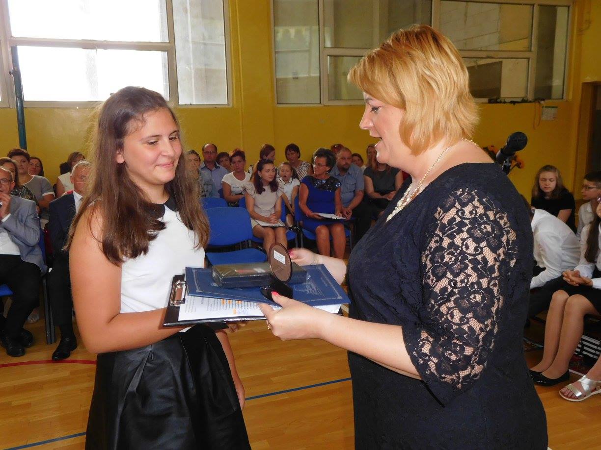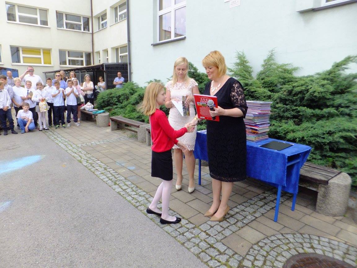 Pani Dyrektor Dagmara Kupczyk serdecznie pogratulowała swoim podopiecznym wspaniałych wyników, które potwierdzone zostały sukcesami w szkolnych i zewnętrznych konkursach, wręczyła również świadectwa z wyróżnieniem oraz nagrody książkowe. Przypomniała o zasadach bezpieczeństwa obowiązujących podczas wakacyjnego odpoczynku. Następnie uczniowie wraz z wychowawcami udali się do klas, aby po raz ostatni w tym roku szkolnym zasiąść w szkolnej ławie... na szczęście tylko po to, aby życzyć sobie udanych wakacji! Wychowawcy przeprowadzili krótkie pogadanki nt. bezpieczeństwa i życzyli swoim klasom radosnego i aktywnego wypoczynku.